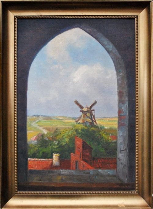 Kliim, Lars (1890 - 1942) Danmark. Udsigt fra en kirke. Olie på lærred/træ. Signeret.: Lars Kliim 1923. 50 x 35 cm.
