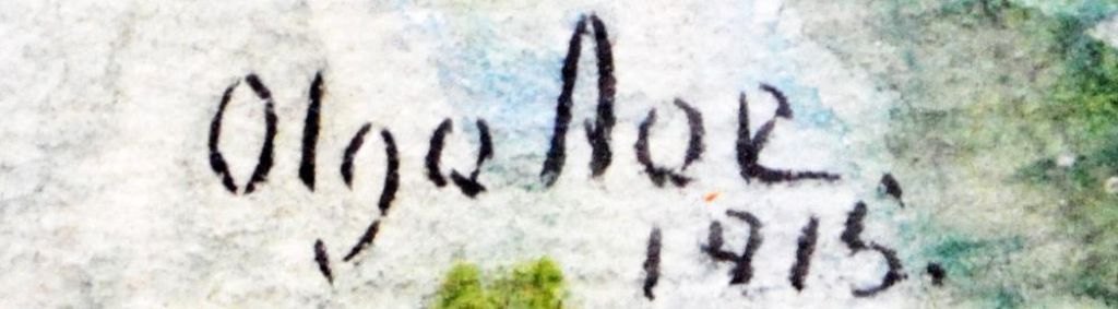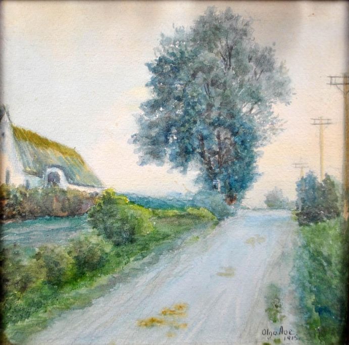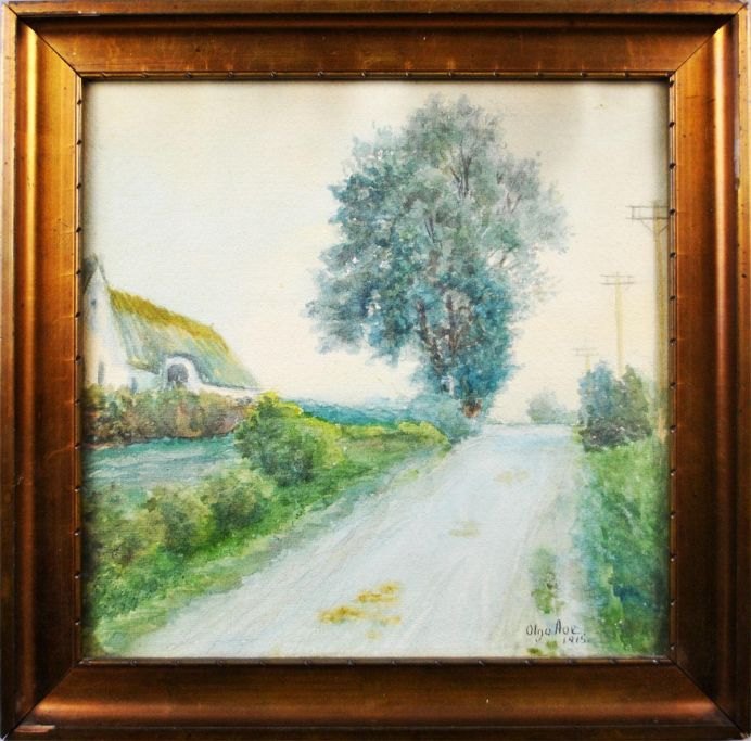 Aae, Olga  (1877 - 1965) Danmark: En markvej. Akvarel. Signeret: Olga Aae 1915.