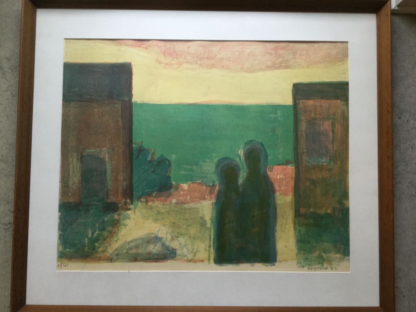 Litografi af Per Lergaard - Personer i landskab 1963.