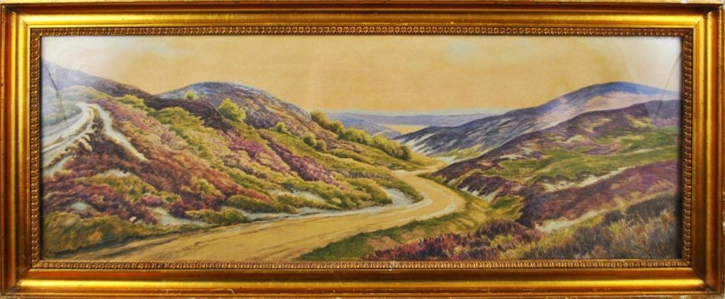 Leisner, Vilhelm (1837 - 1910) Danmark. Hedeparti. Akvarel. Signeret.: V. Leisner 1915. 22 x 61 cm.