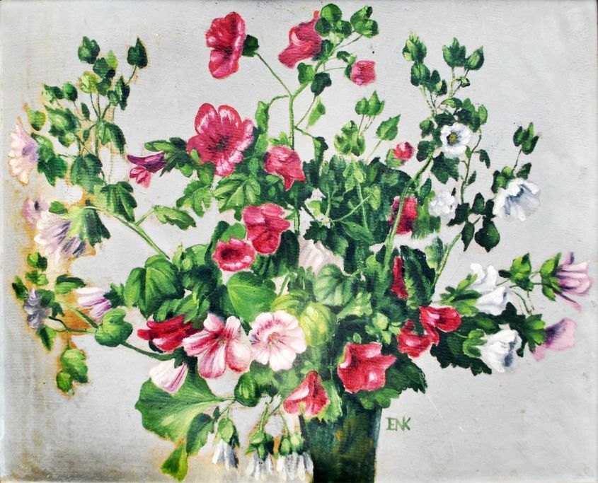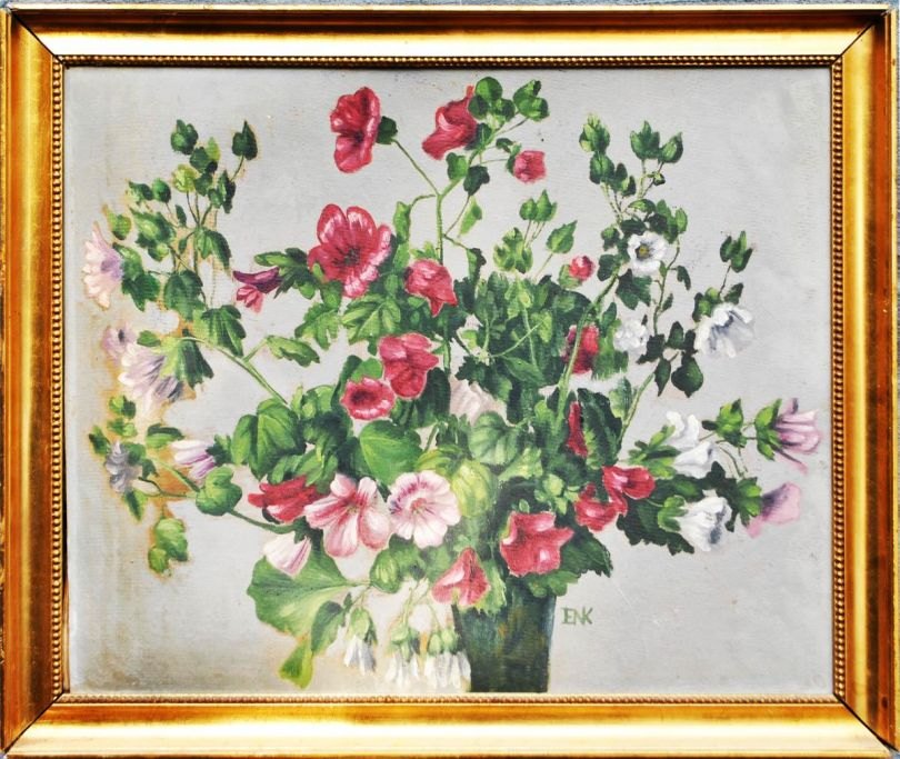 Korlind, Einar Nielsen (1884 - 1975) Danmark: En blomster buket i en vase. Olie på pap. Signeret: Monogram. 34 x41 cm.
