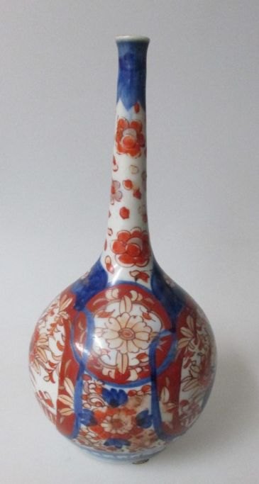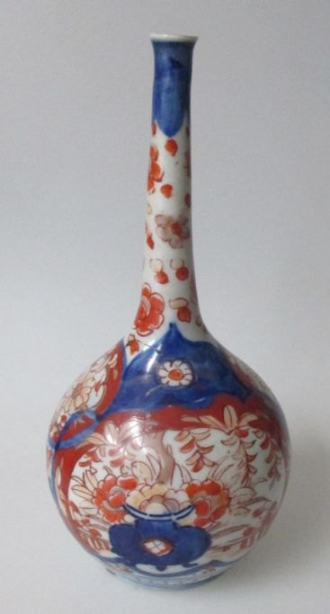 Imari vase, 19. årh. Japan. Dekoreret i blåt - rødt med forgyldninger med blomster. H.: 20,5 cm.