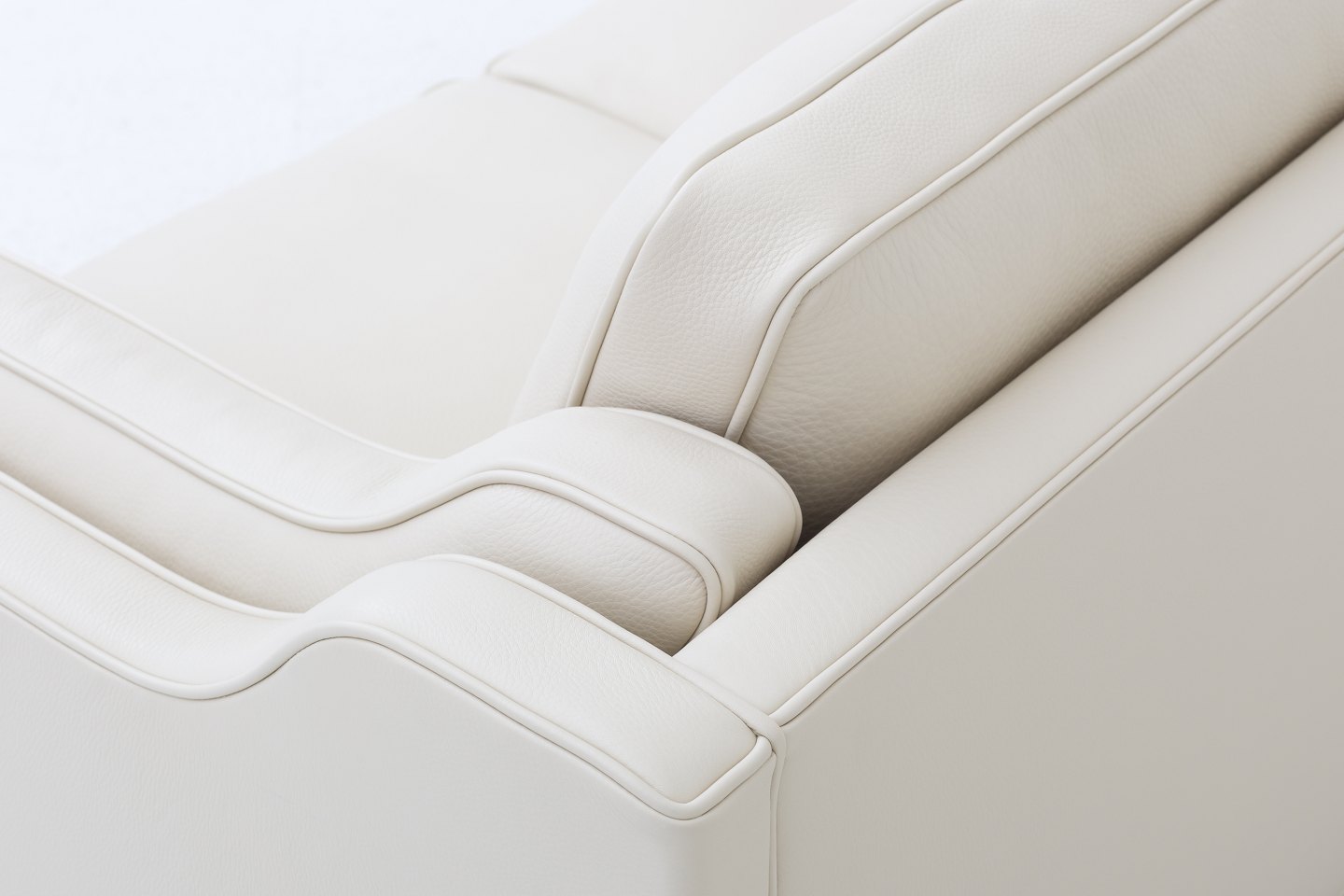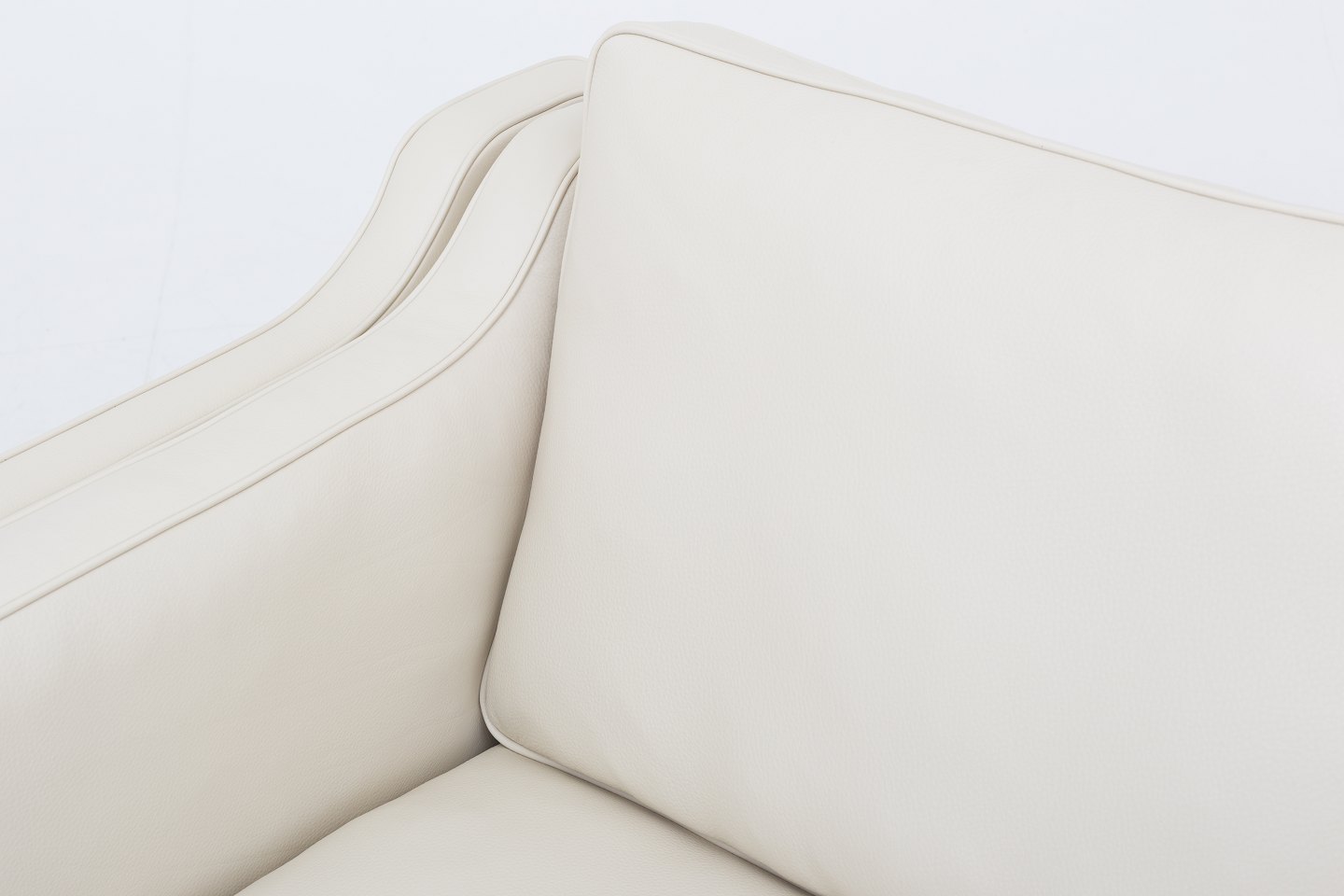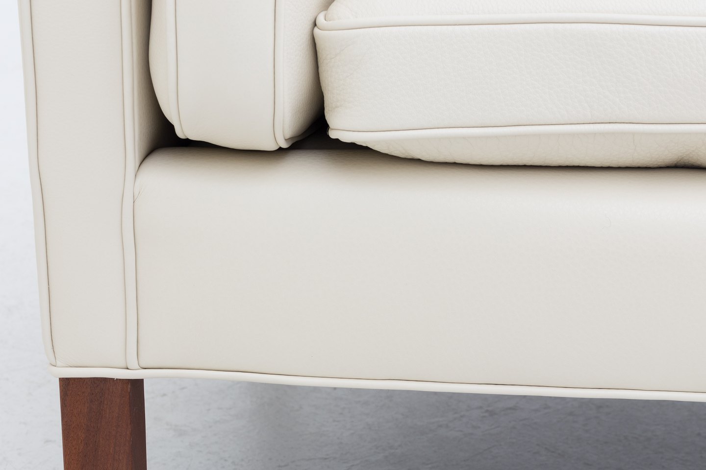 BM 2212 - Nybetrukket 2 pers. sofa i cremefarvet Paris Cream-læder med ben i mahogni. KLASSIK tilbyder polstring af sofaen med stof eller læder efter eget valg