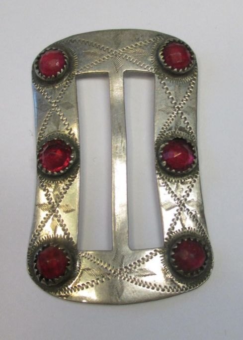 Dansk sølv bælte spænde med glas flusser, 19. årh.