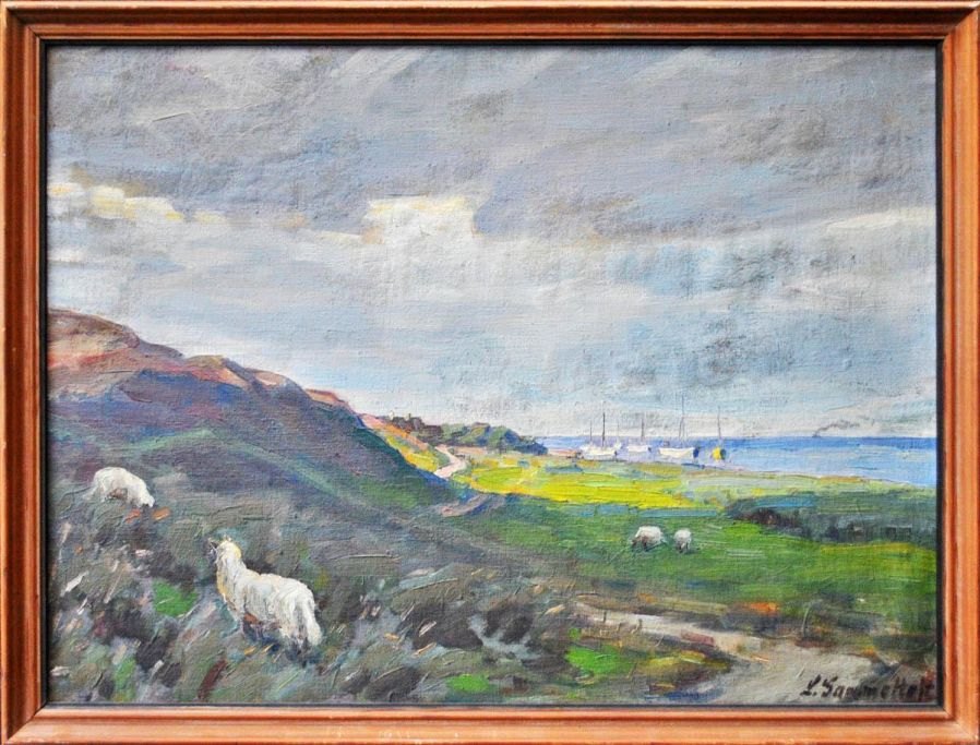 Gammeltoft, L. (19th century) Speep on a field. Oil on canvas. Signed: L. Gammeltoft. 44 x 59 cm.