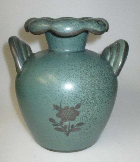 Arabia vase, 280, 20. årh. Finland. Grønlig glasur. Dekoreret på siden med blomster. Stemplet. Højde.: 18 cm.