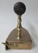 Dansk stryge jern i messing, 19. årh. Med håndtag. Længde.: 14 cm. H: 14 cm.