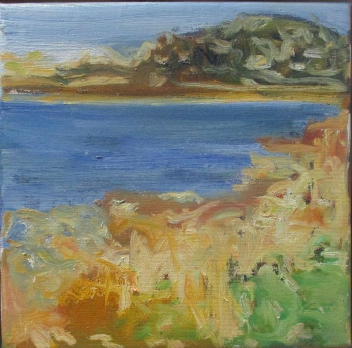 Degett, Karen (1954 - 2011) Danmark: Landskab. Olie på lærred. Verso signeret.: Karen Degett 06. 24 x 24 cm.