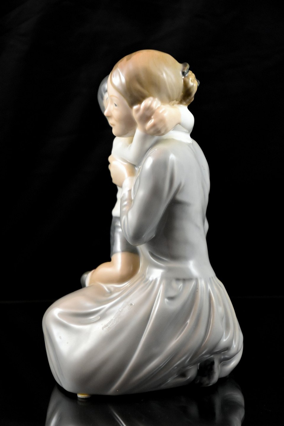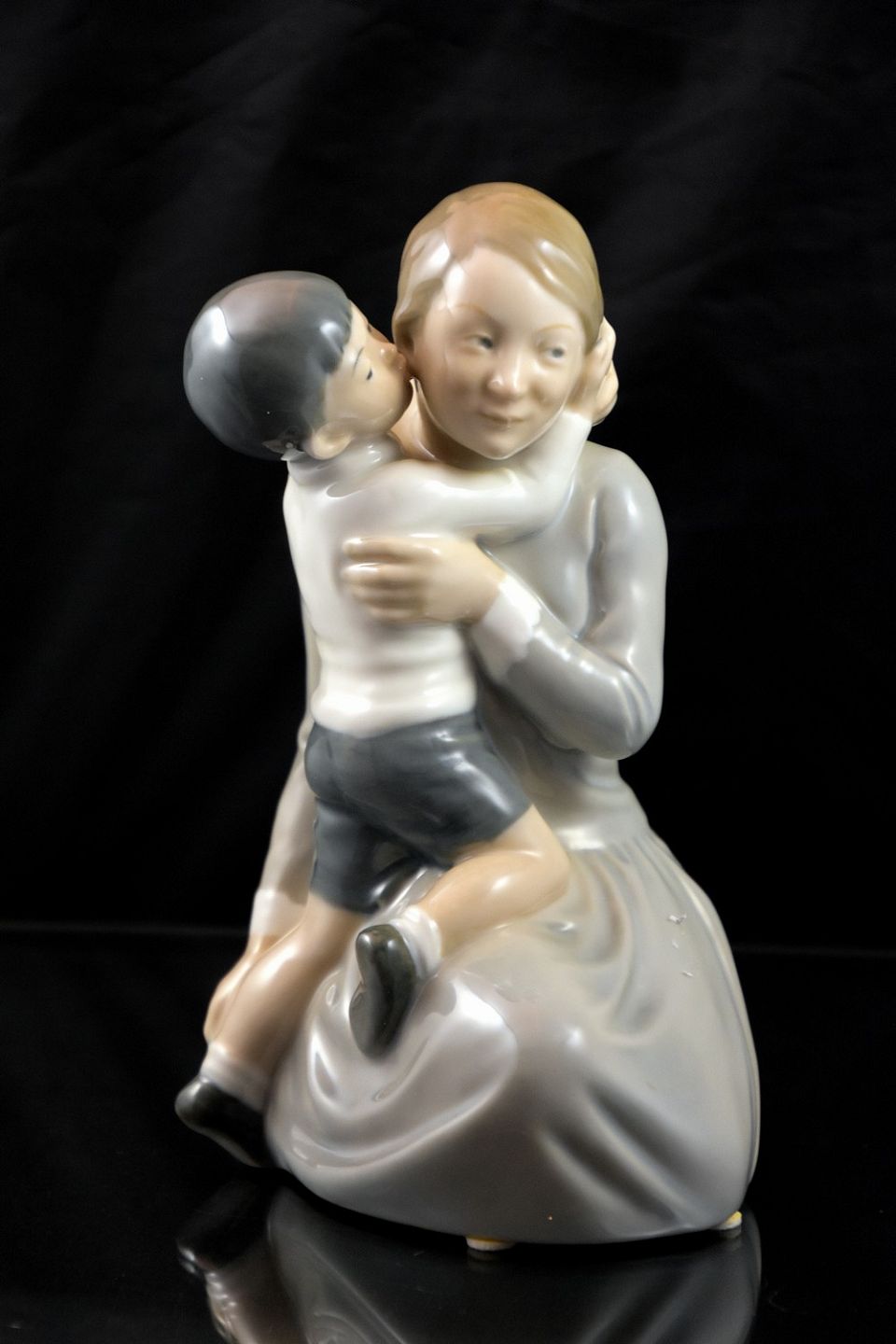 Kongelig figur, Mor I grå kjole, med dreng i grå bukser (3457) Royal Copenhagen