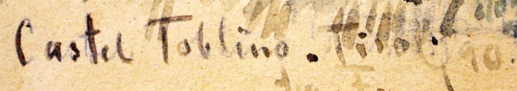 Fischer, August (1854 - 1921) Denmark. Castel Toblino. Watercolor. Signed: Aug. F 90. 17 x 24 cm.
