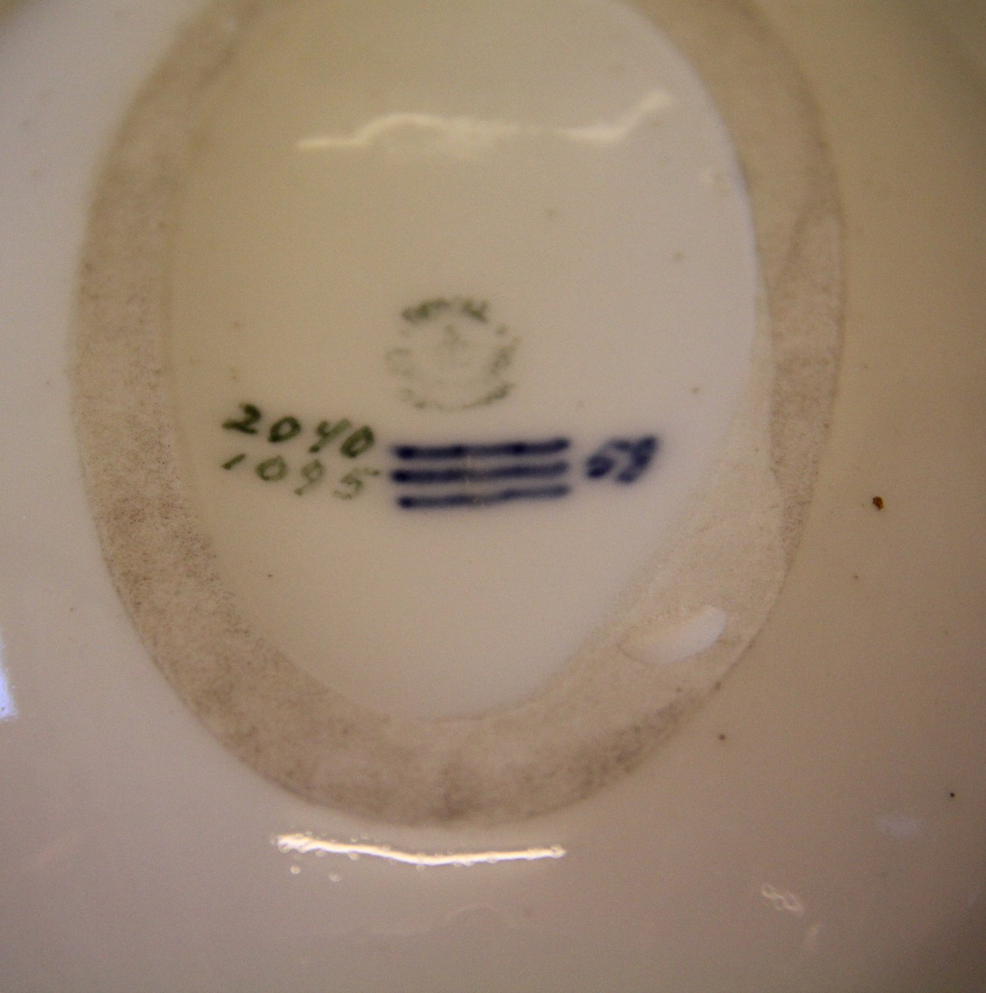Kongelig Dansk 2040-1095 Kgl. Art nouveau æggeformet lågskål 16 x 11 x 11.5 cm Marine motiv