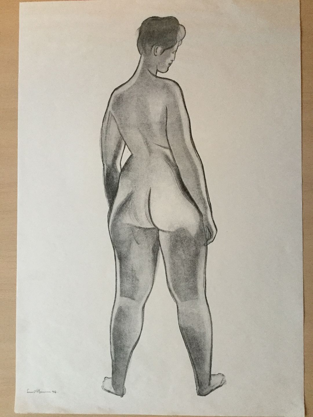 Tryk af Ernst Hansen 1948 - Nøgen kvinde - Modelstudie Eva.