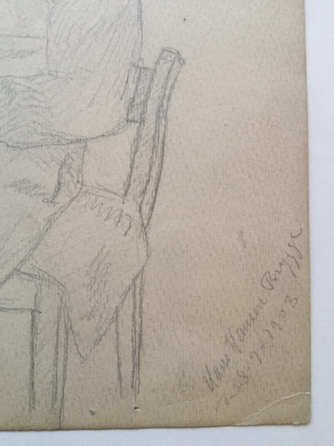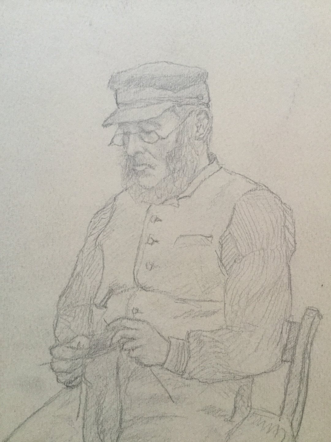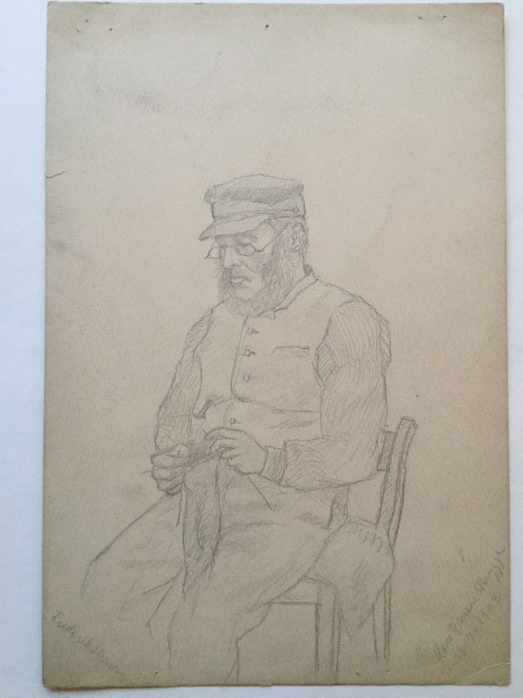 Blyantstegning af Hans Brygge - Siddende ældre mand, Frederikshavn 1903.