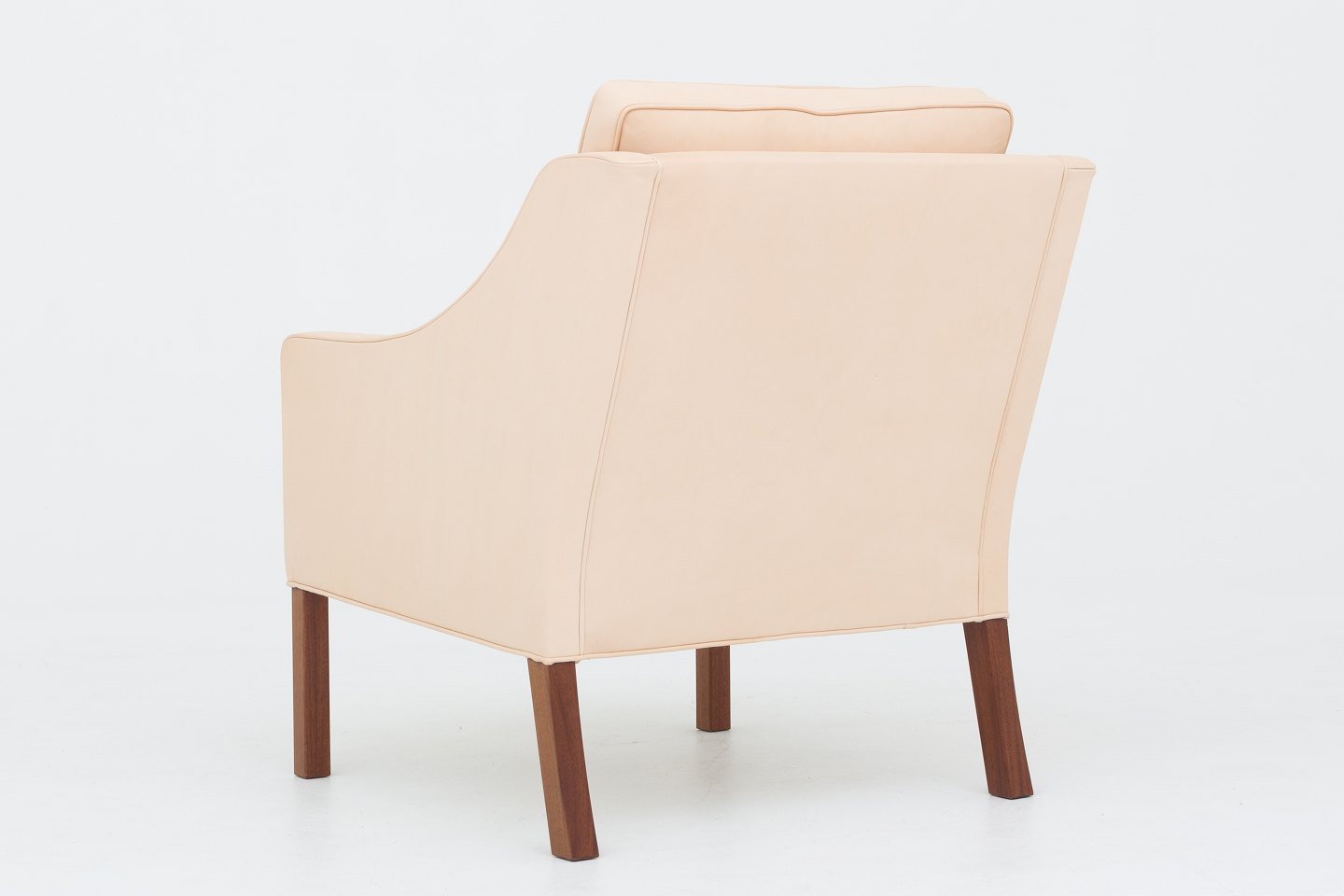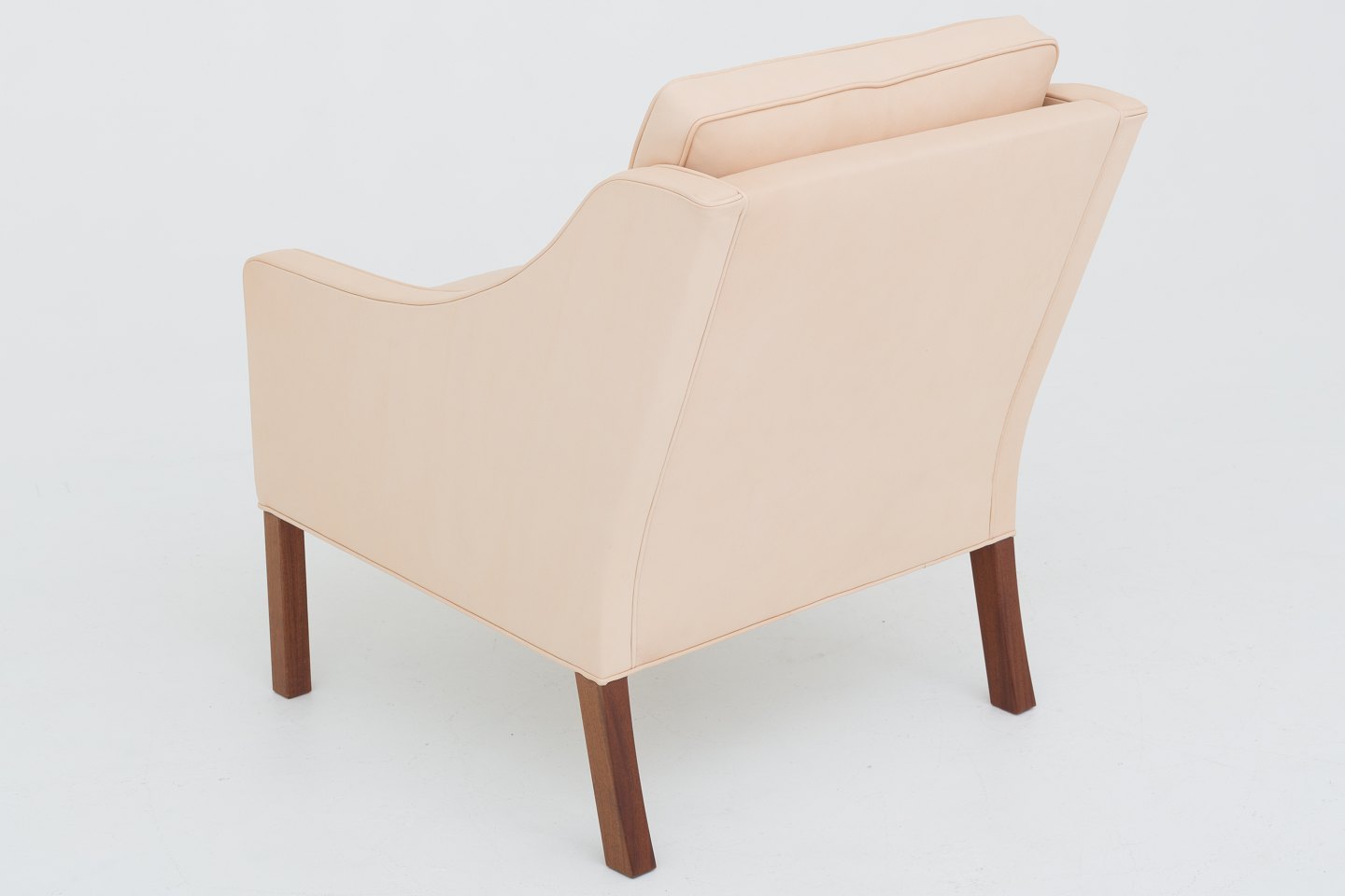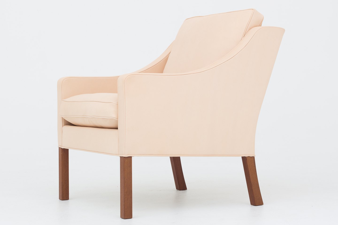 BM 2207 - Nybetrukket lænestol i vegetallæder og ben i mahogni. Vi tilbyder polstring af stolen med stof eller læder efter eget valg