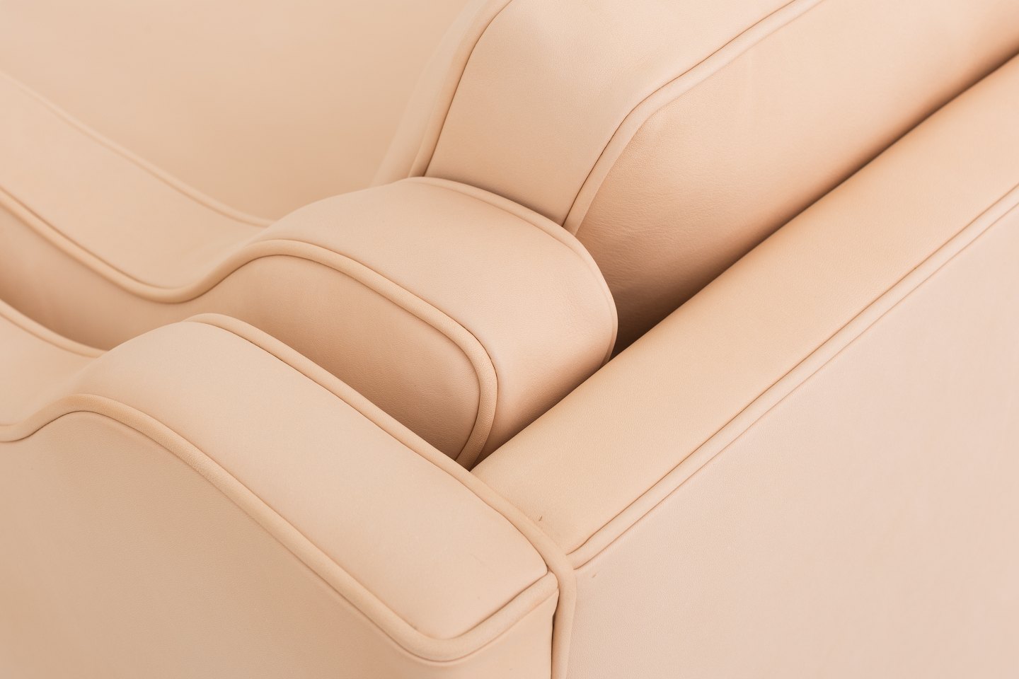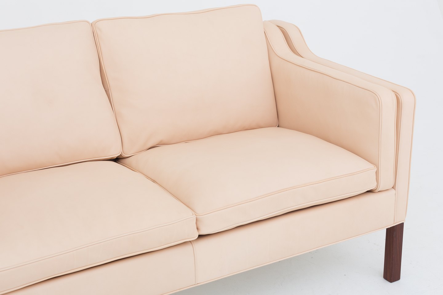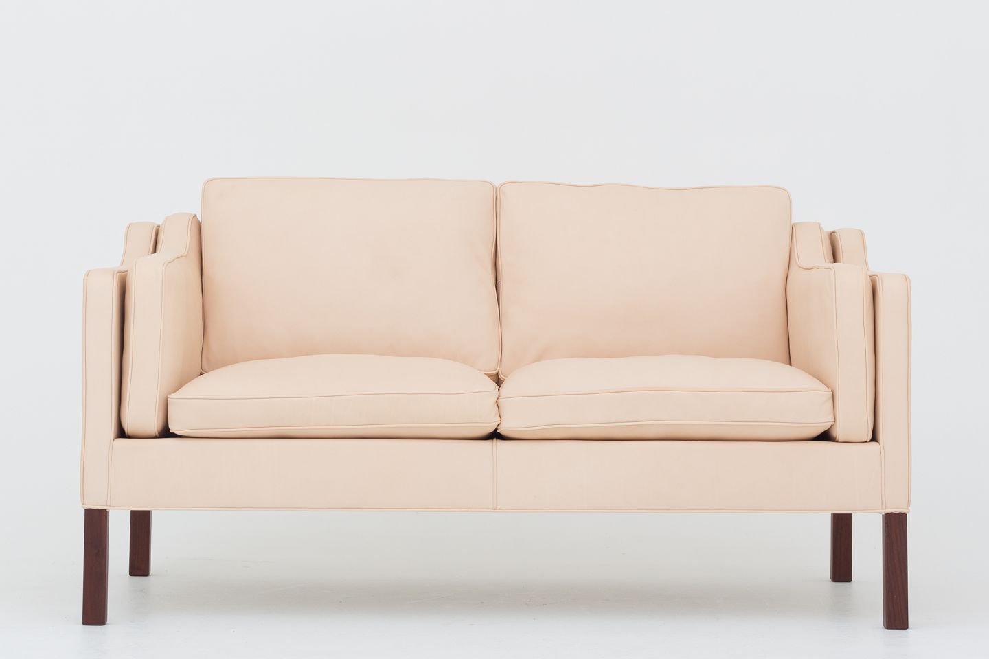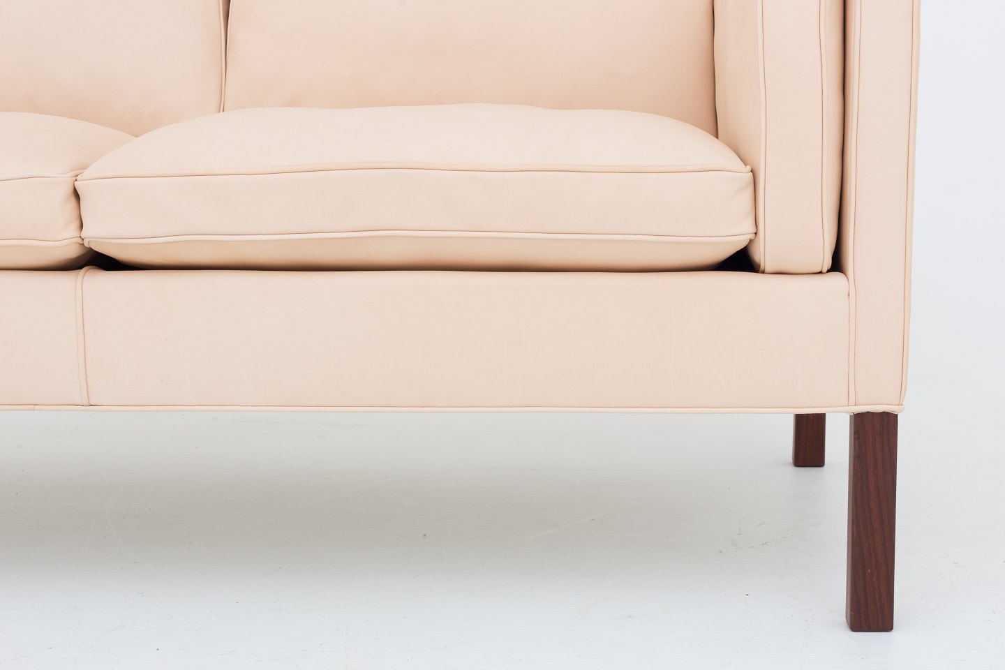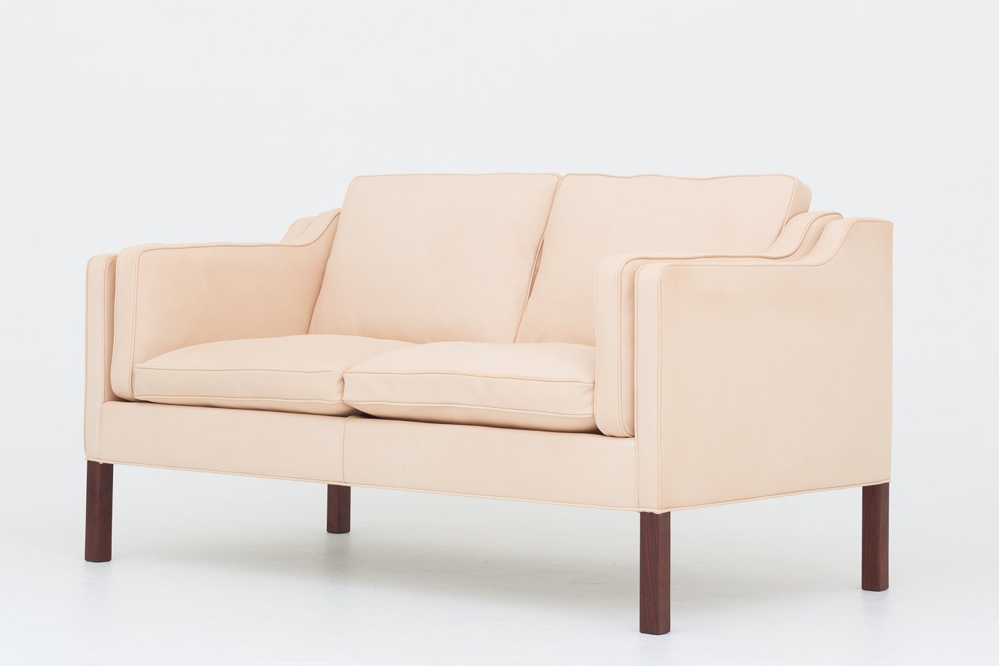BM 2212 - Nybetrukket 2 pers. sofa i vegetallæder med ben i mahogni. Vi tilbyder polstring af sofaen med stof eller læder efter eget valg