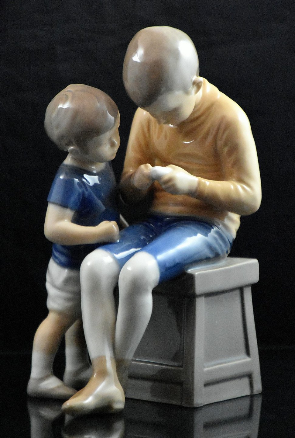 Bing og Grøndahl figur "Tom & Villy" (1648) Figuren er designet af Ingeborg Plockross Irminger. blå og brun skjorte, 1. sortering