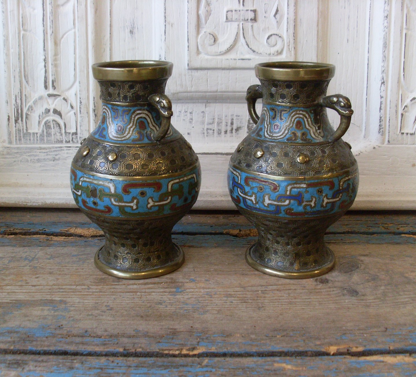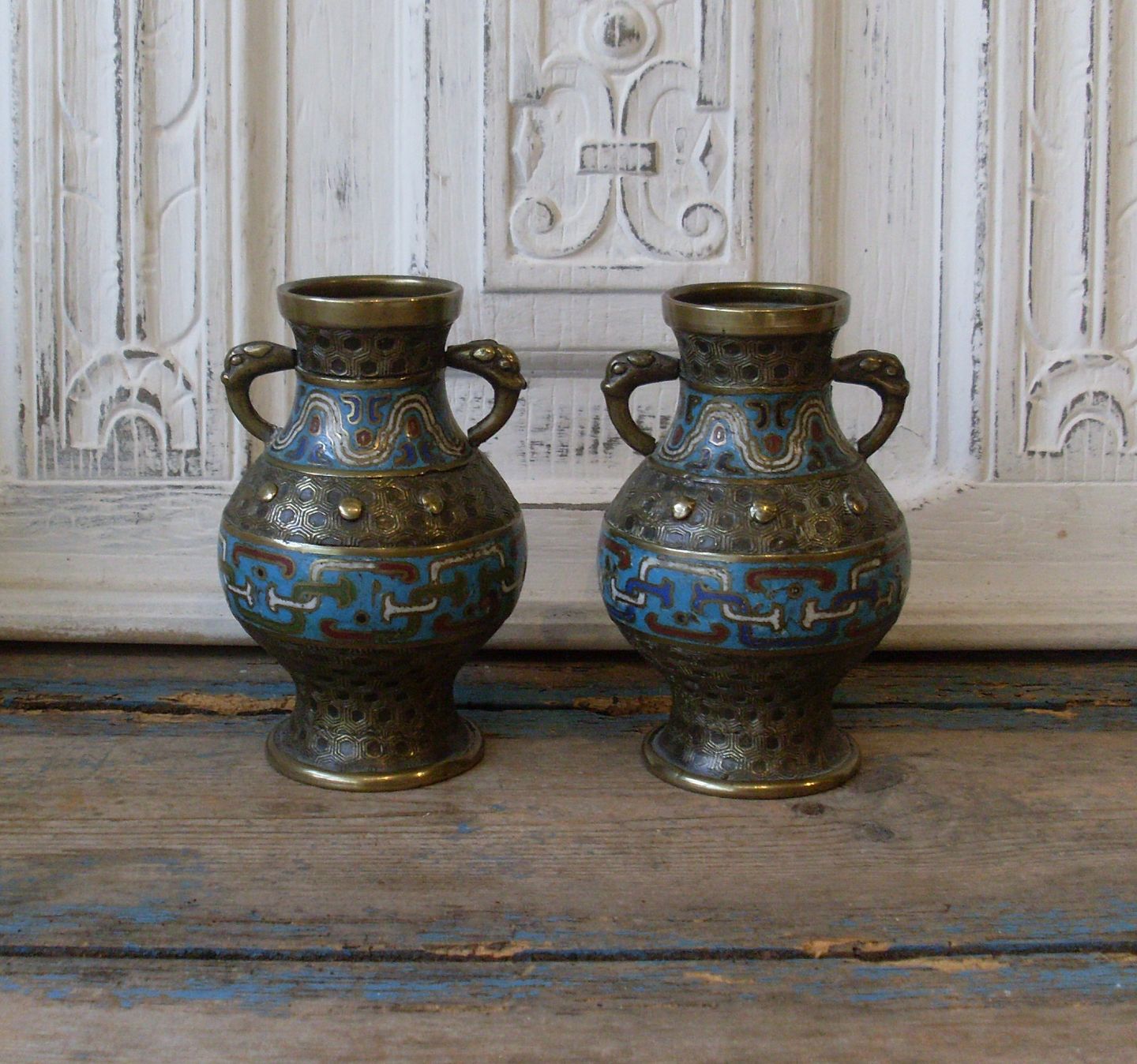 Par kinesiske Cloisonné vaser fra starten af 1900tallet.
