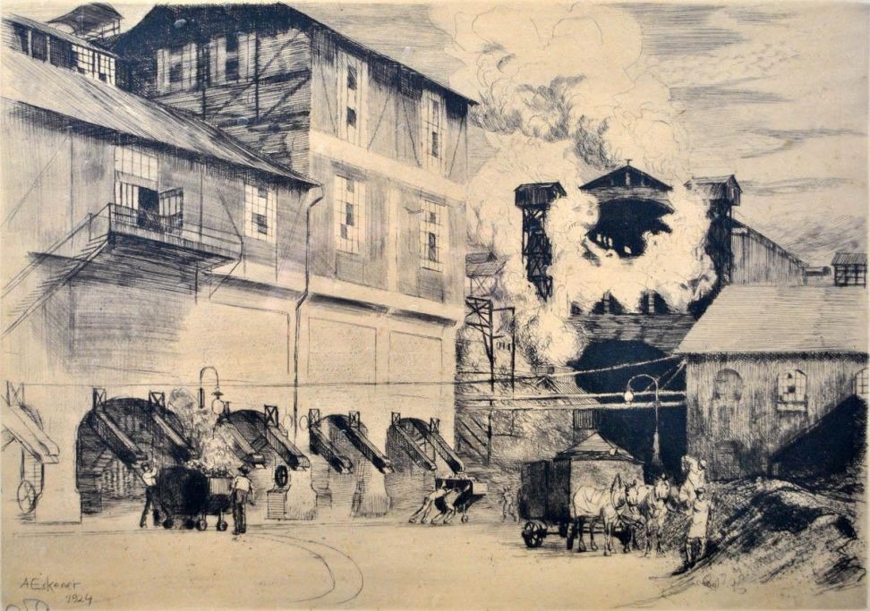 Eckener, Alexander (1870 - 1944) Tyskland. Et  stålværk. Radering. Signeret: A. Eckener 1924. 26 x 37 cm.