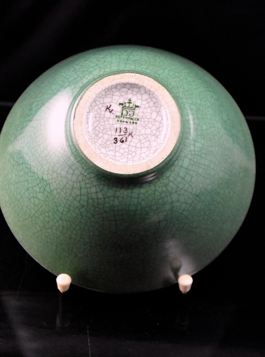 Craquele skål i porcelæn med guld kant og motiv af Koi karbe. Nr. 113/361