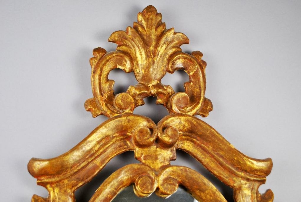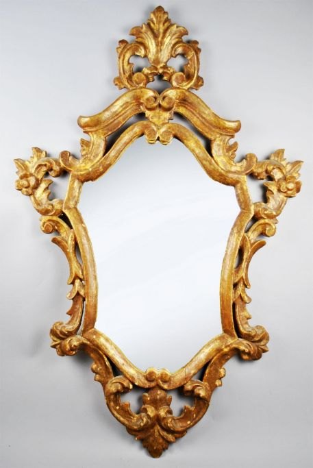 Italian carved gildwood rococo wall mirror, 19th century H: 98 cm. B: 64 cm. Provenance: Artist Couple Bertha and NV Dorph.
