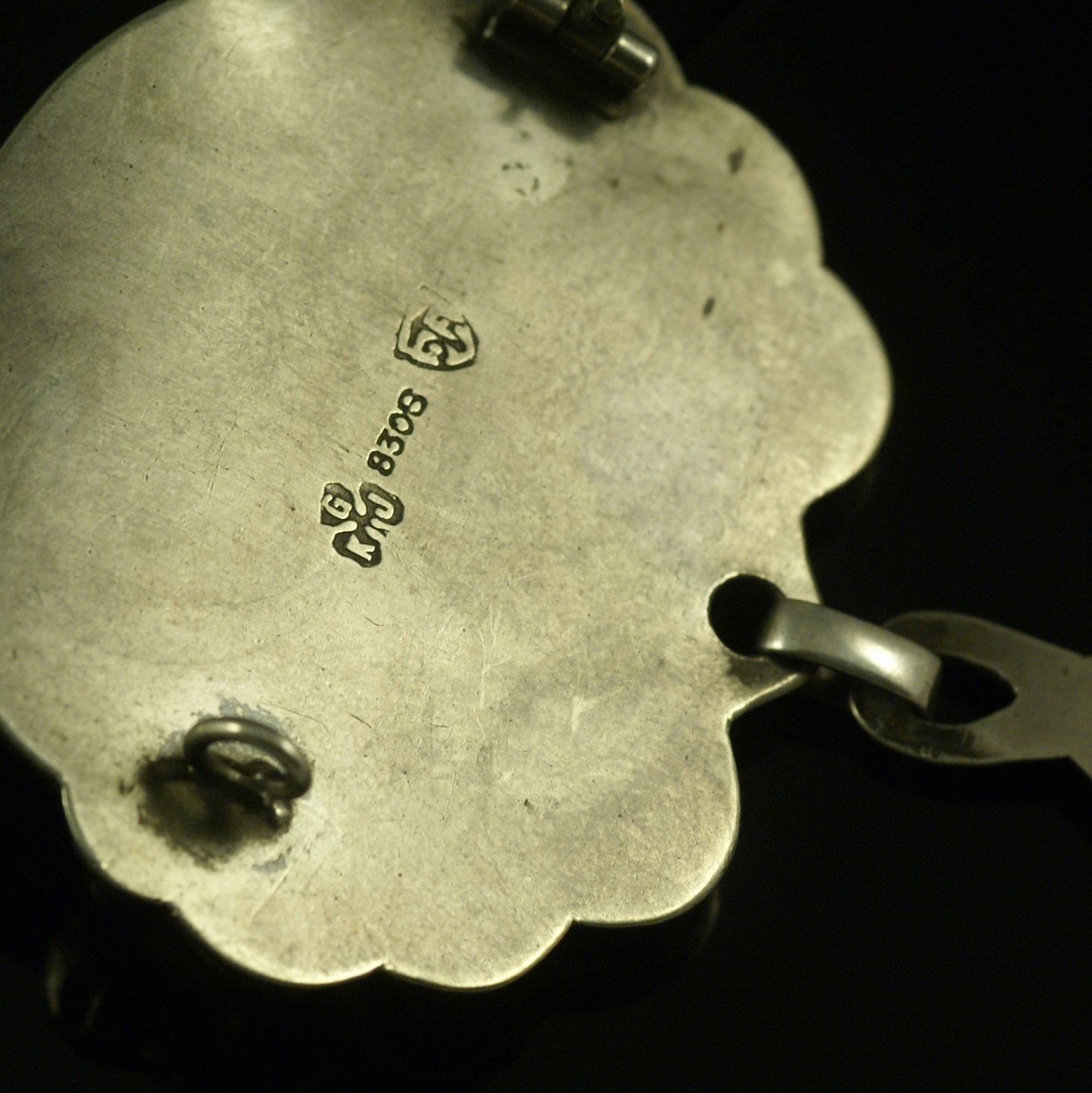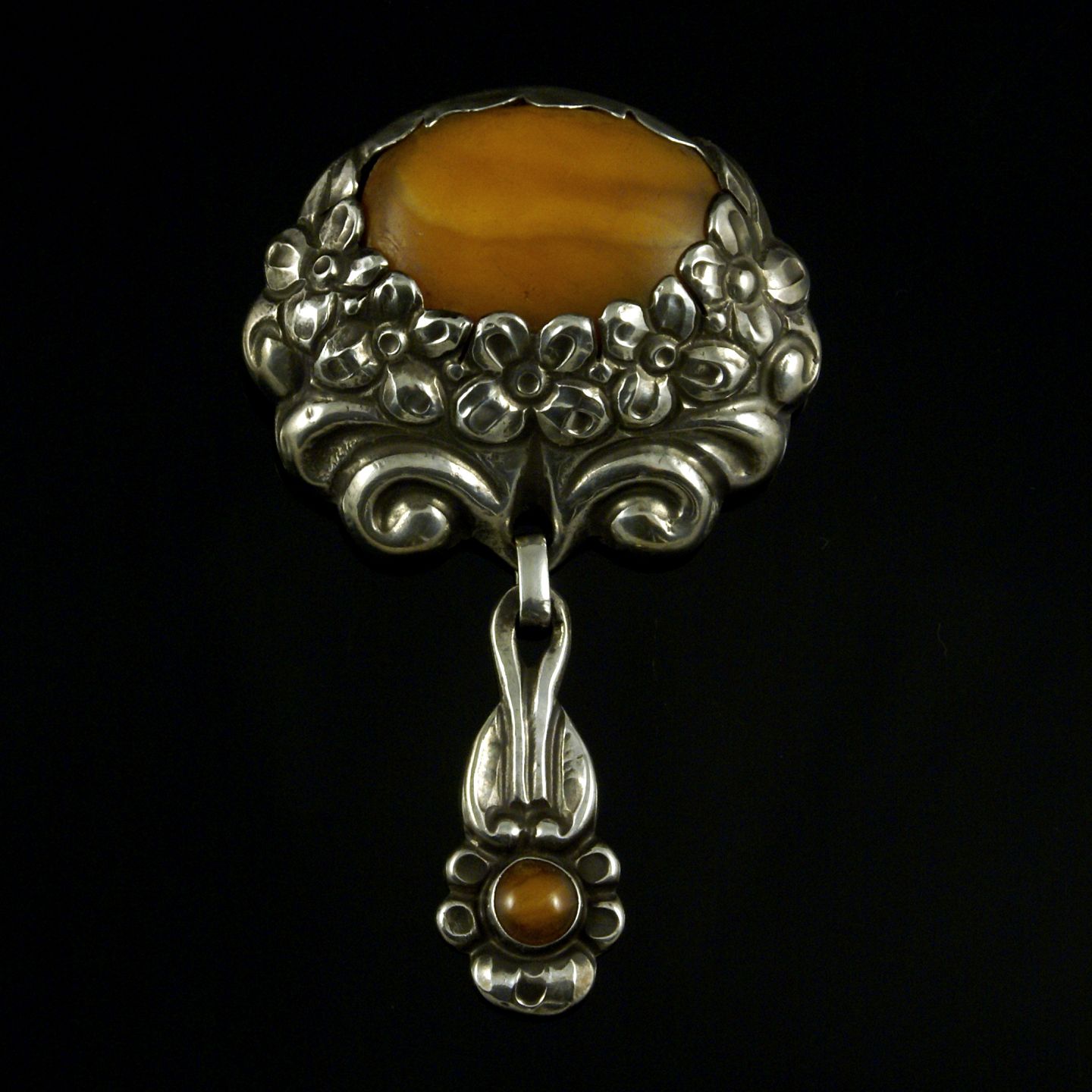 Knud Georg Jensen. Skønvirke Broche i Sølv med rav.