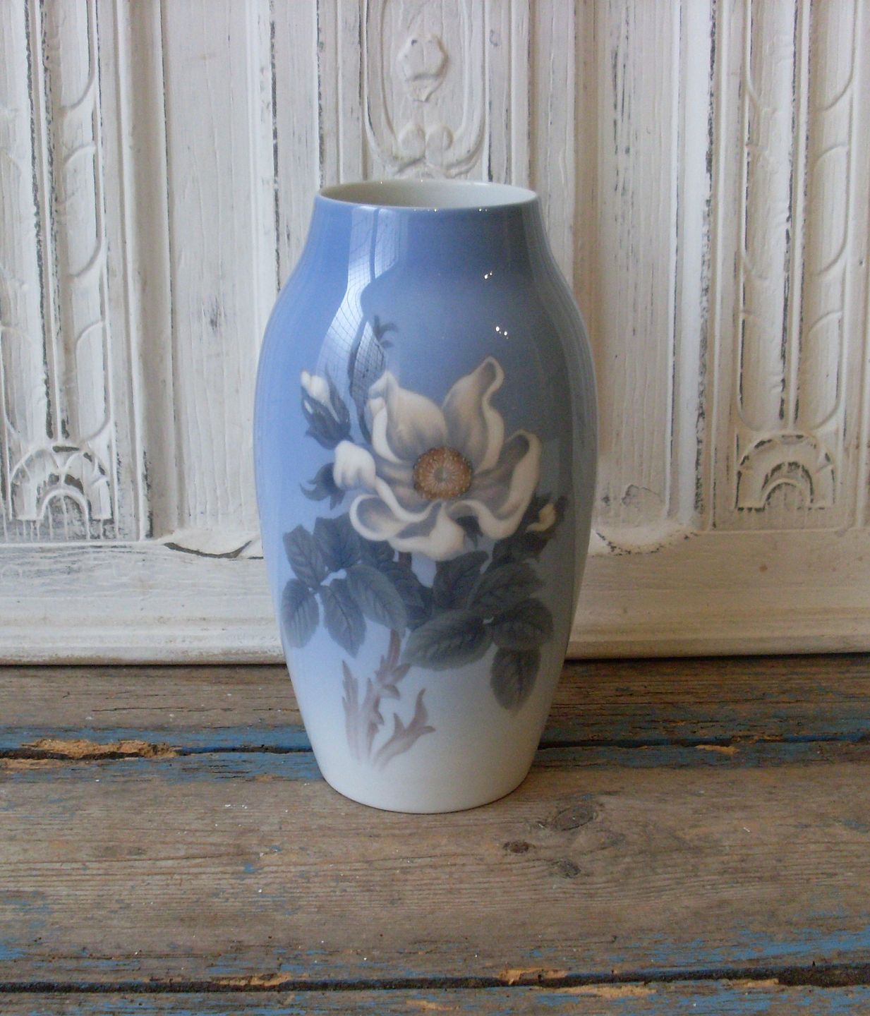 B&G vase dekoreret med hvid hyben rose no. 8743/243