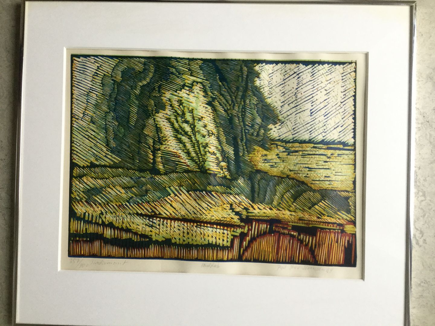 Linoleumssnit på papir.
