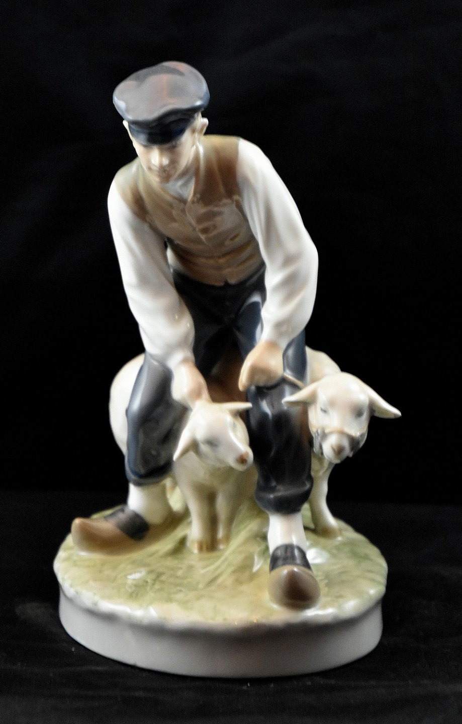Royal Copenhagen bonde med 2 får (627). Den kongelige figur er Design Christian Thomsen