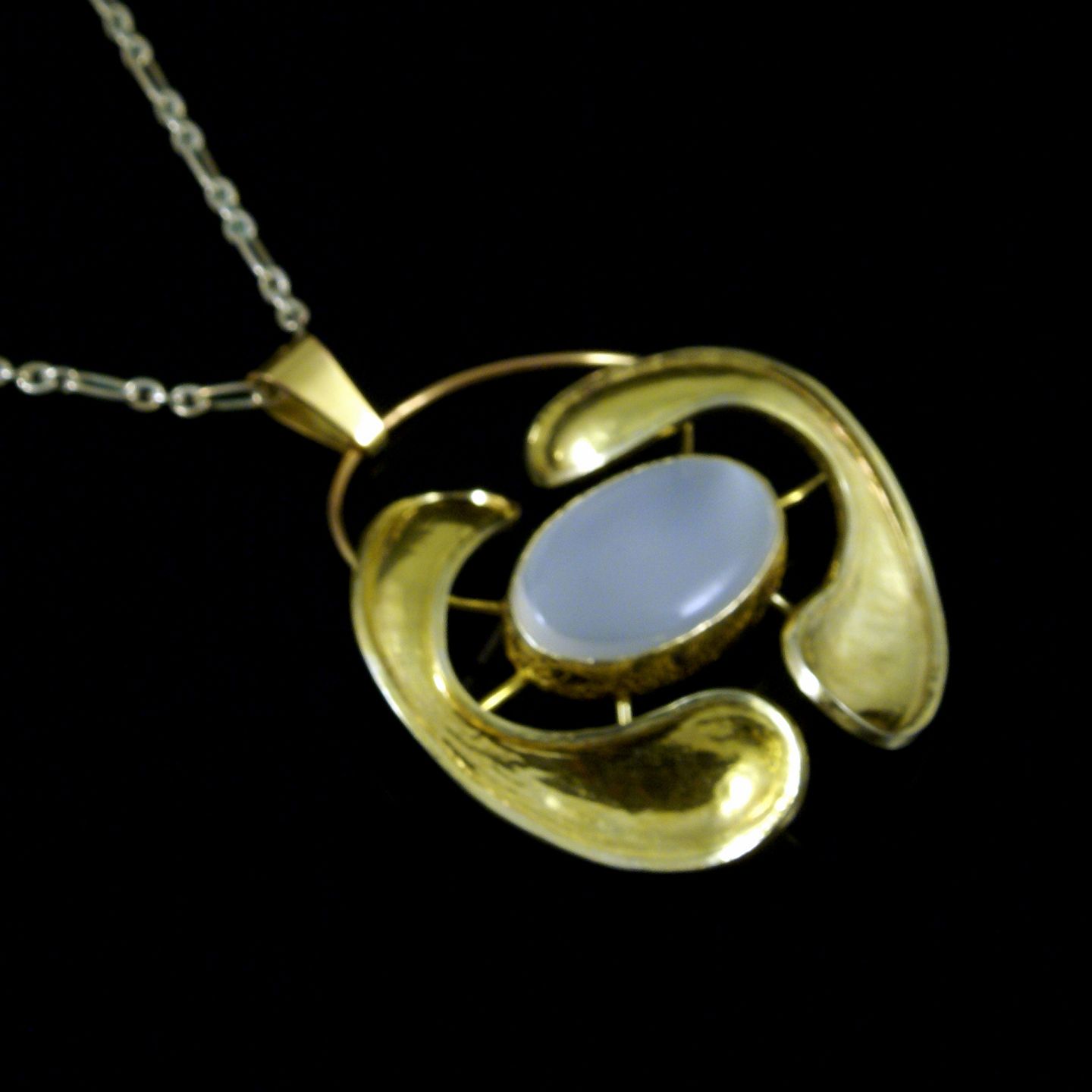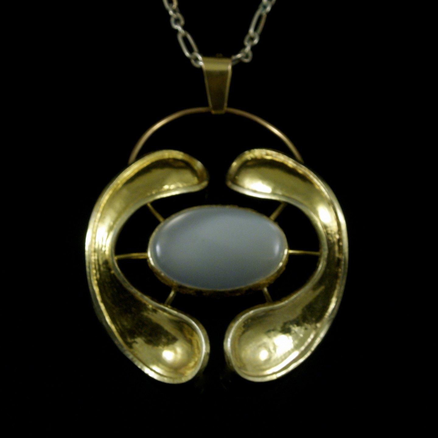 Bent Exner (1932-2006). Halssmykke i lueforgyldt sterling sølv med månesten