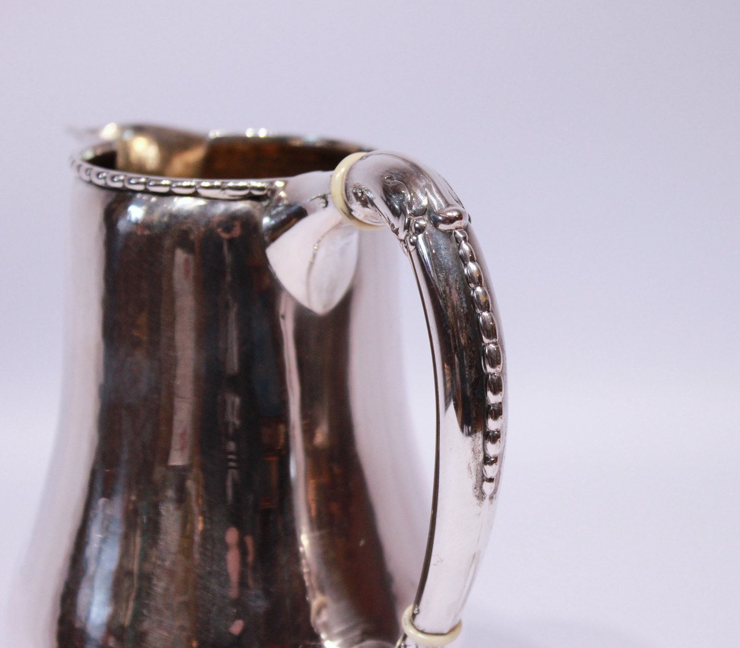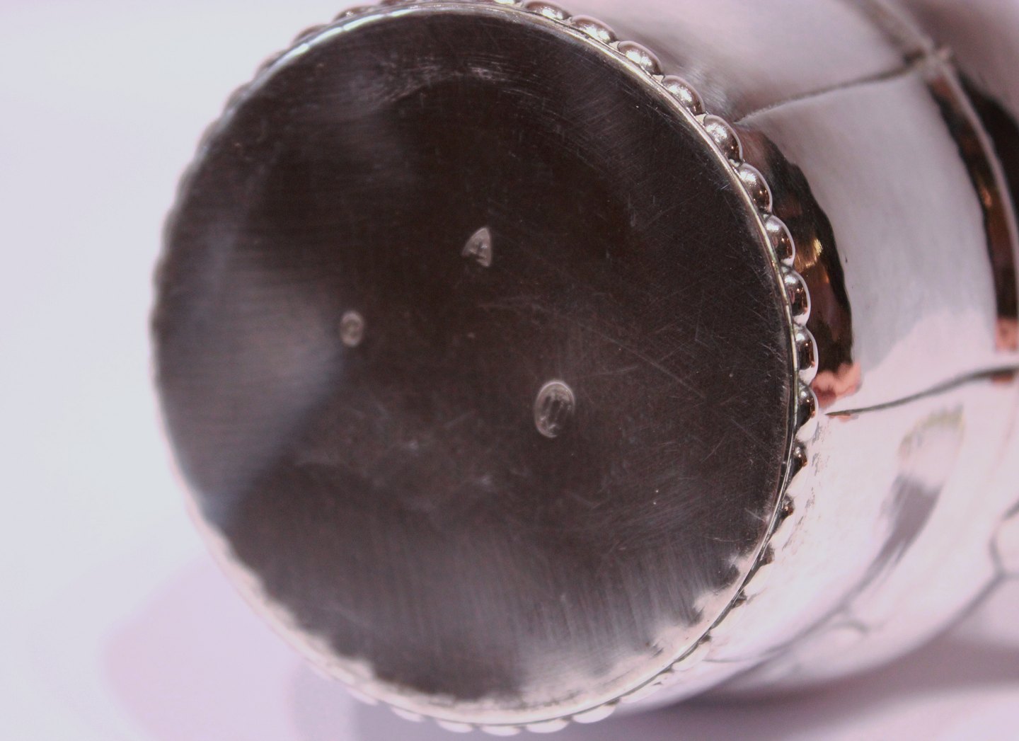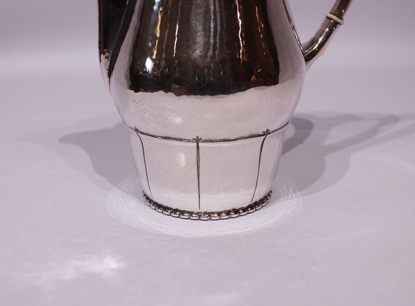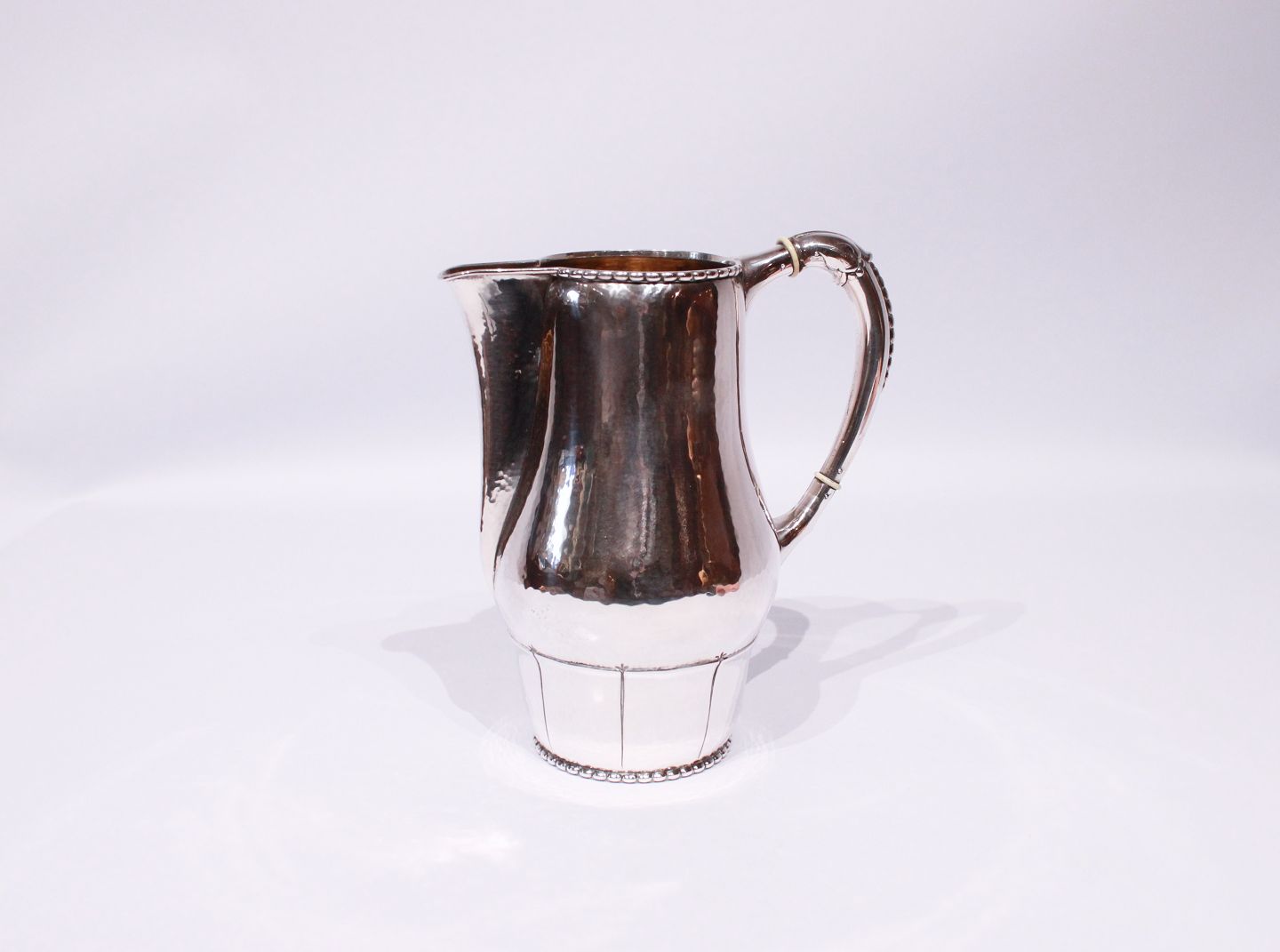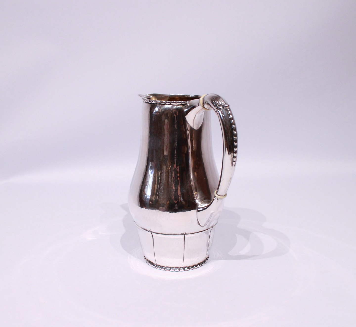Fin vandkande dekoreret med perlekant og elfenben, tretårnet sølv.