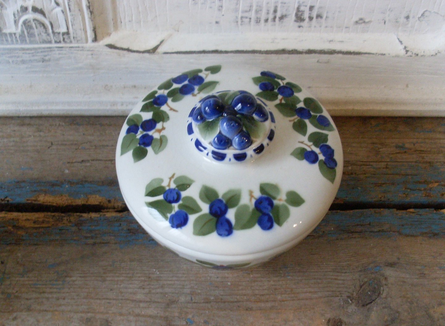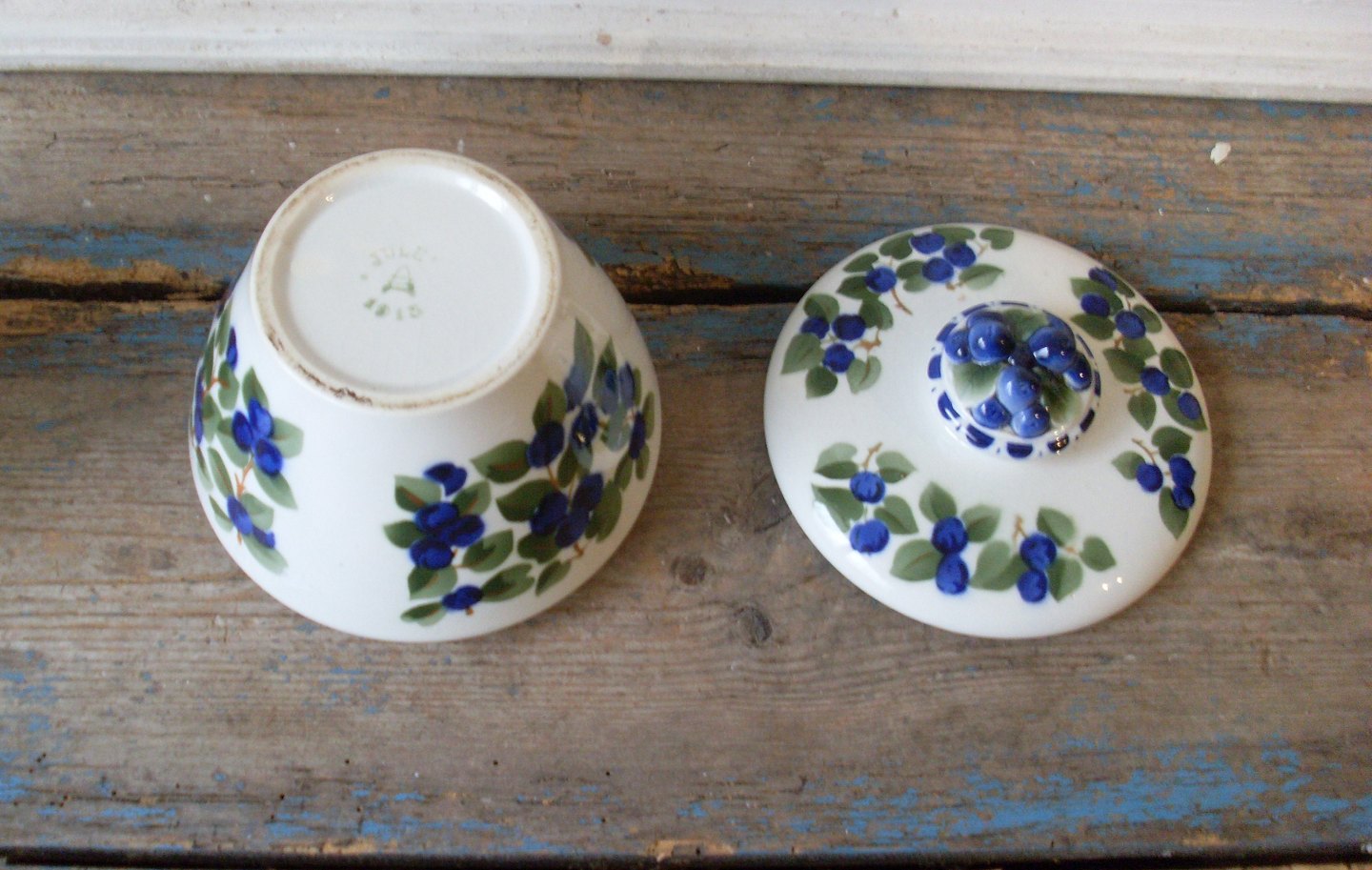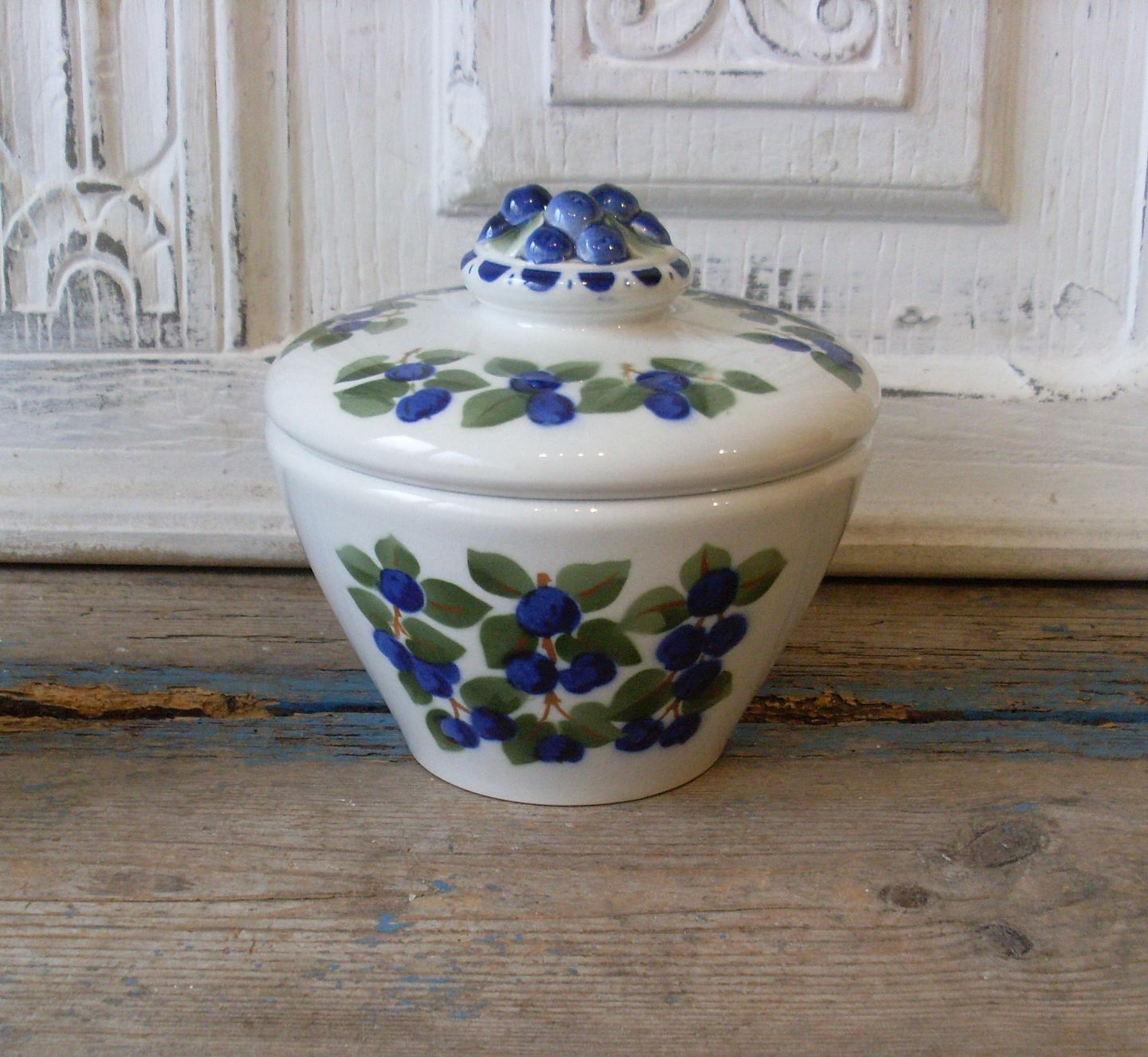 Aluminia marmeladekrukke dekoreret med blåbær fra 1915