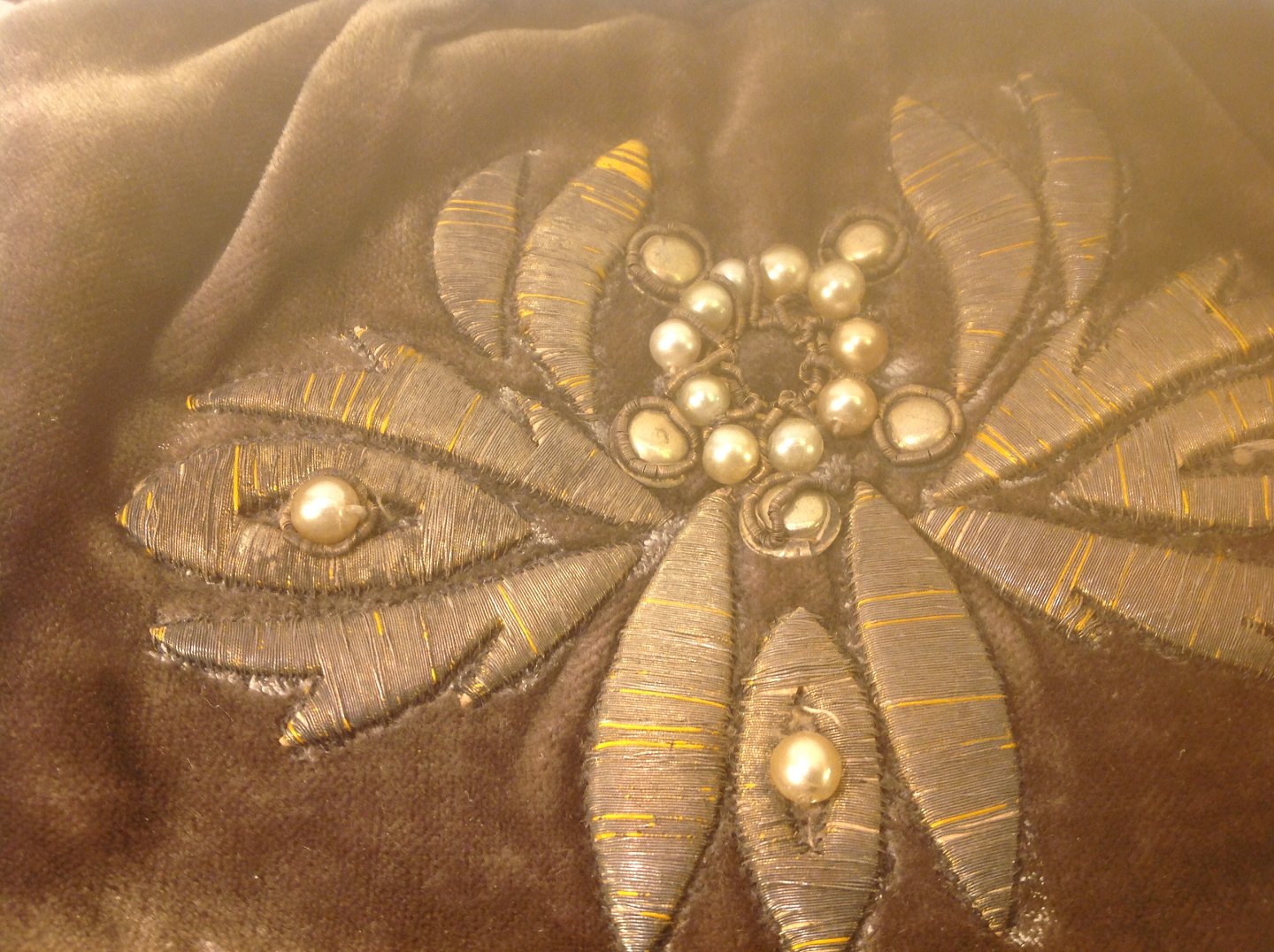 med broderi i sølvtråde og perler.