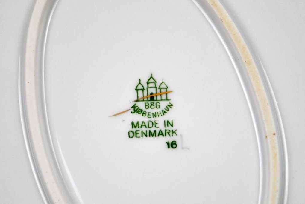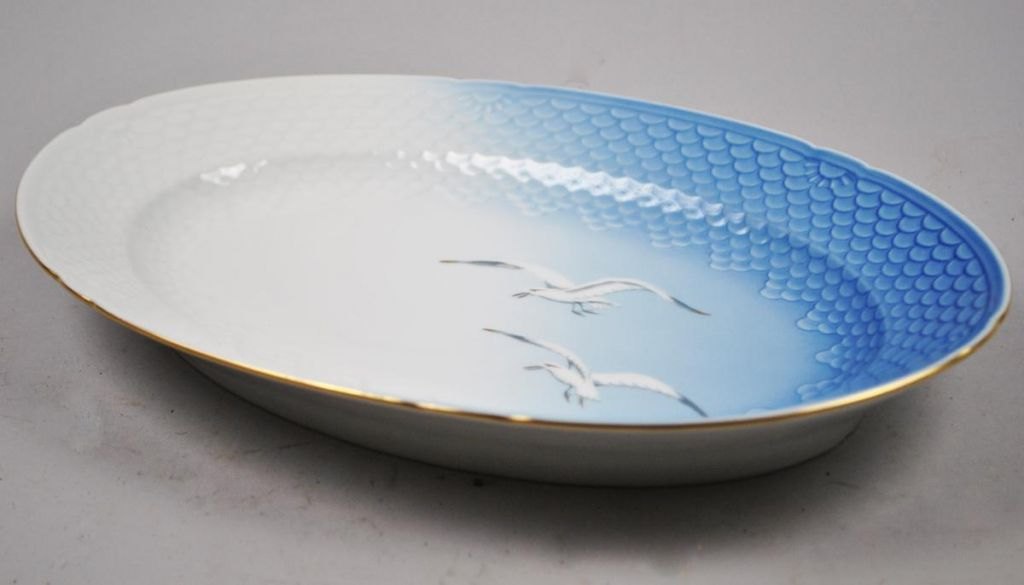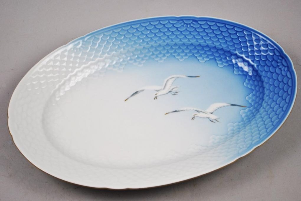 Bing & Grøndahl, ovalt fad, 16, mågestellet med guldkant. 20. årh. København, Danmark