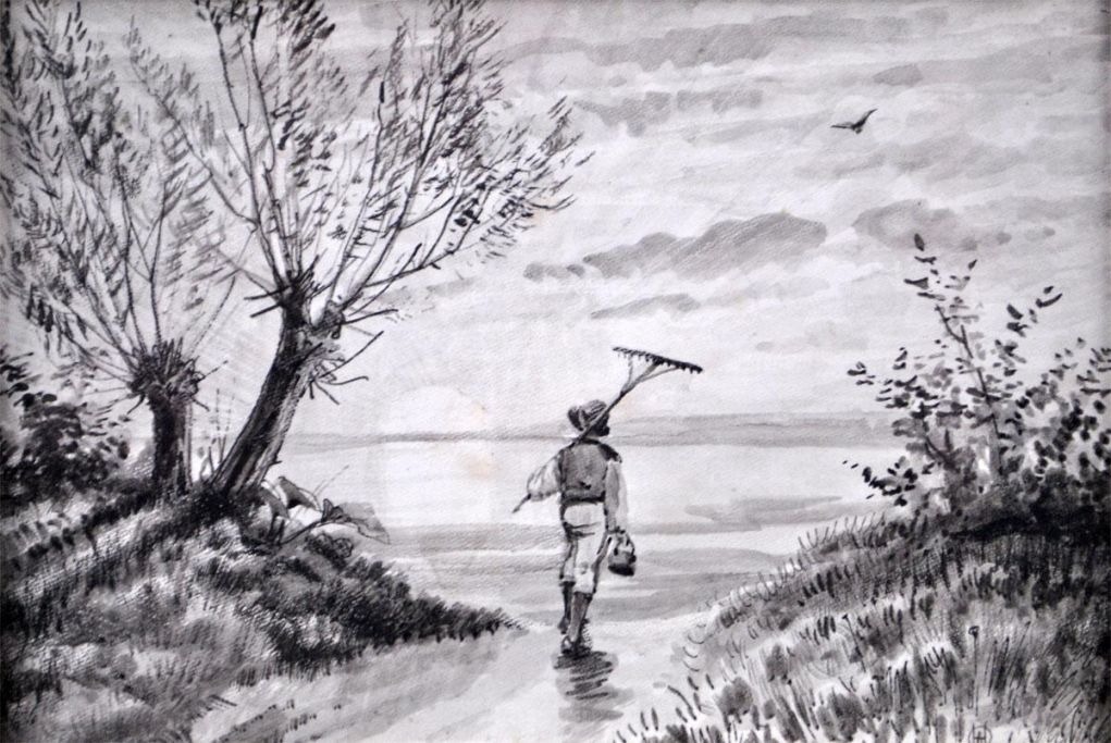 Hermansen, OA (1849 - 1897) A boy on a road. Tusch on paper. Signeret.: Monogram. 10 x 14 cm.