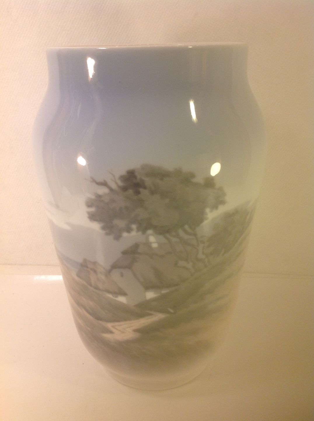 Kongelig Vase med motiv af Det lille hus på engen med havudsigt.