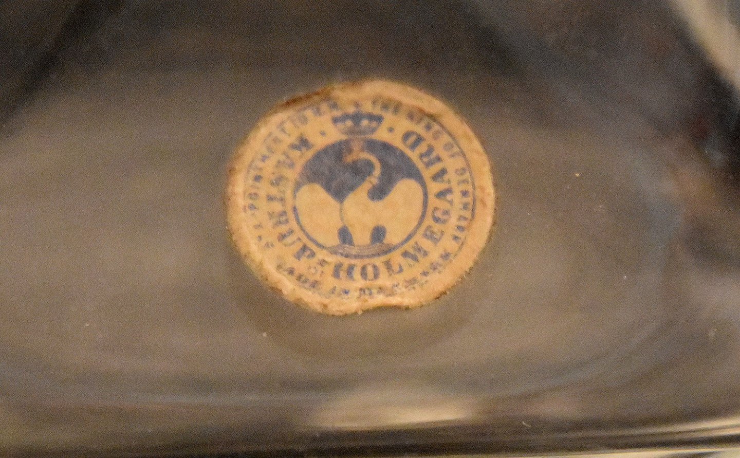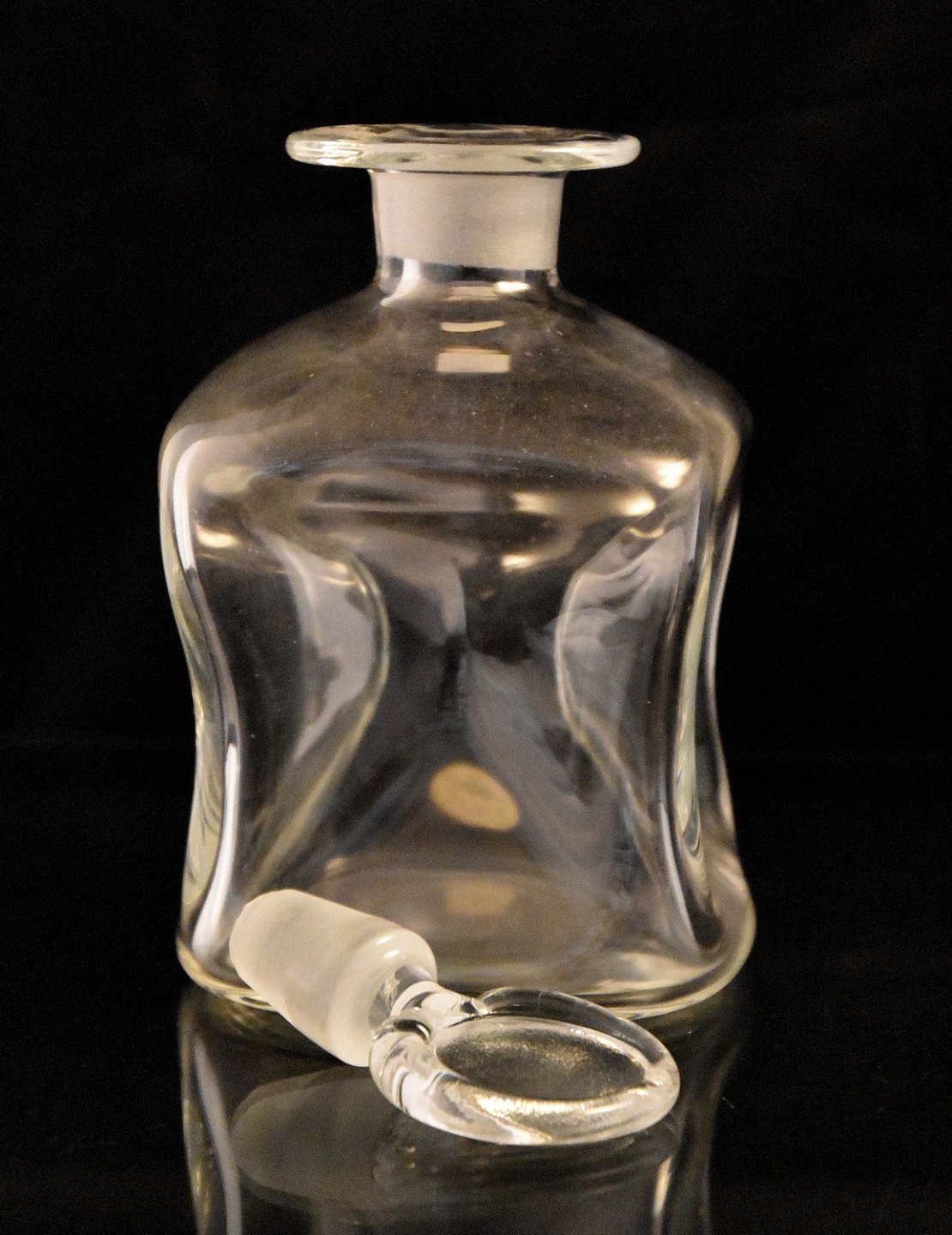Holmegaard Glasværk, lav klukflaske med flad prop