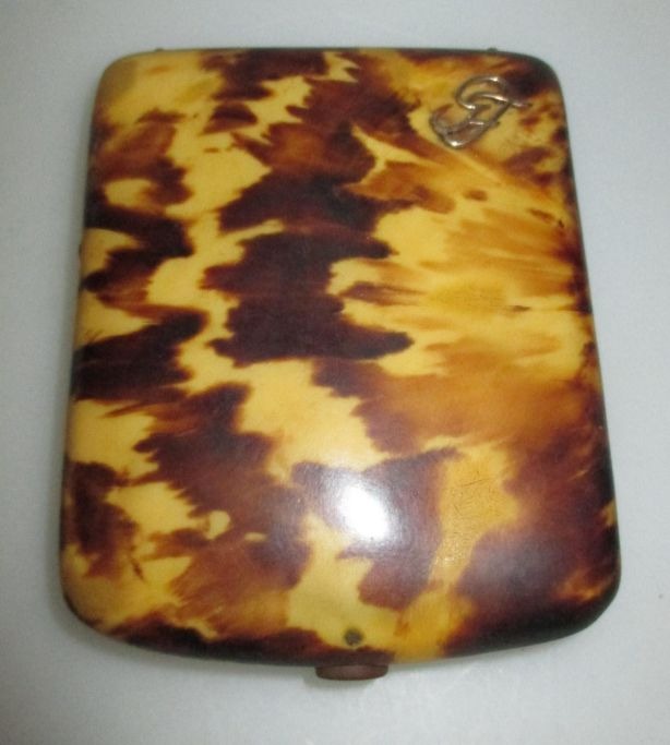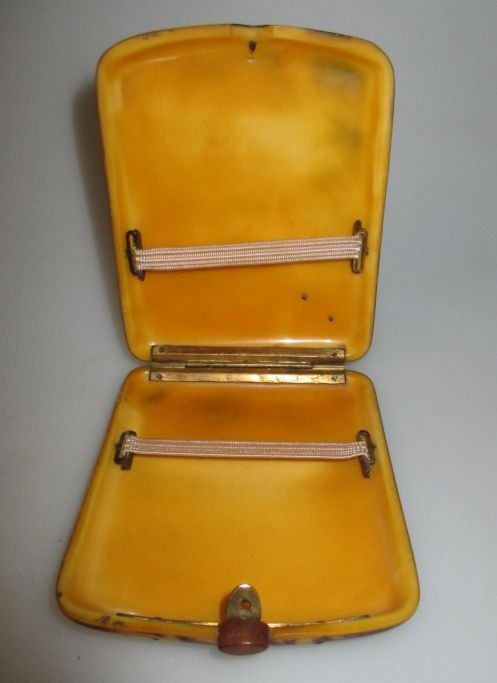 Cigarette case, 20th century. Artificial fabric in yellow / brown as turtle. 8.5 x 7 cm.