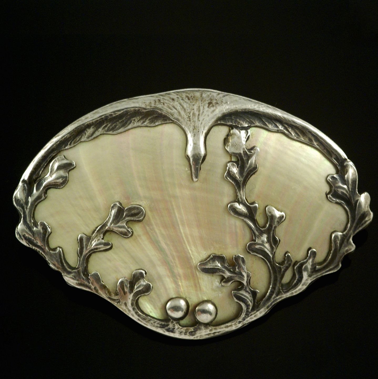 Kirsten Pedersen. Skønvirke Broche i sølv perlemor.