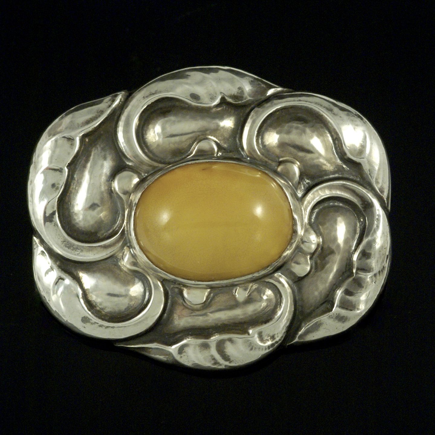 Georg Jensen Broche i Sterling Sølv med rav #61. 1933-44 stempler
