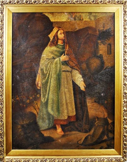 Italiensk kunstner (18. årh.)  Religiøst motiv. Olie på masonit. 55 x 41 cm. Indrammet.