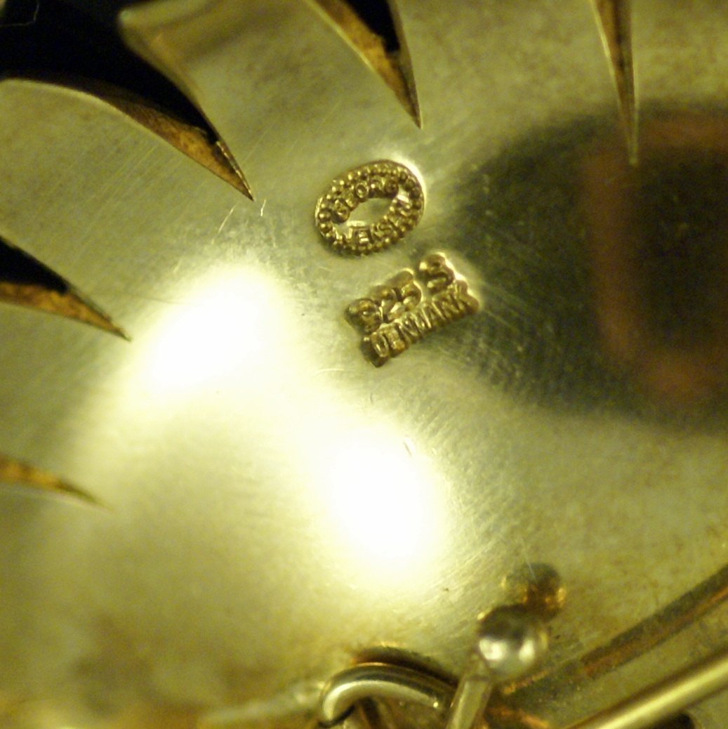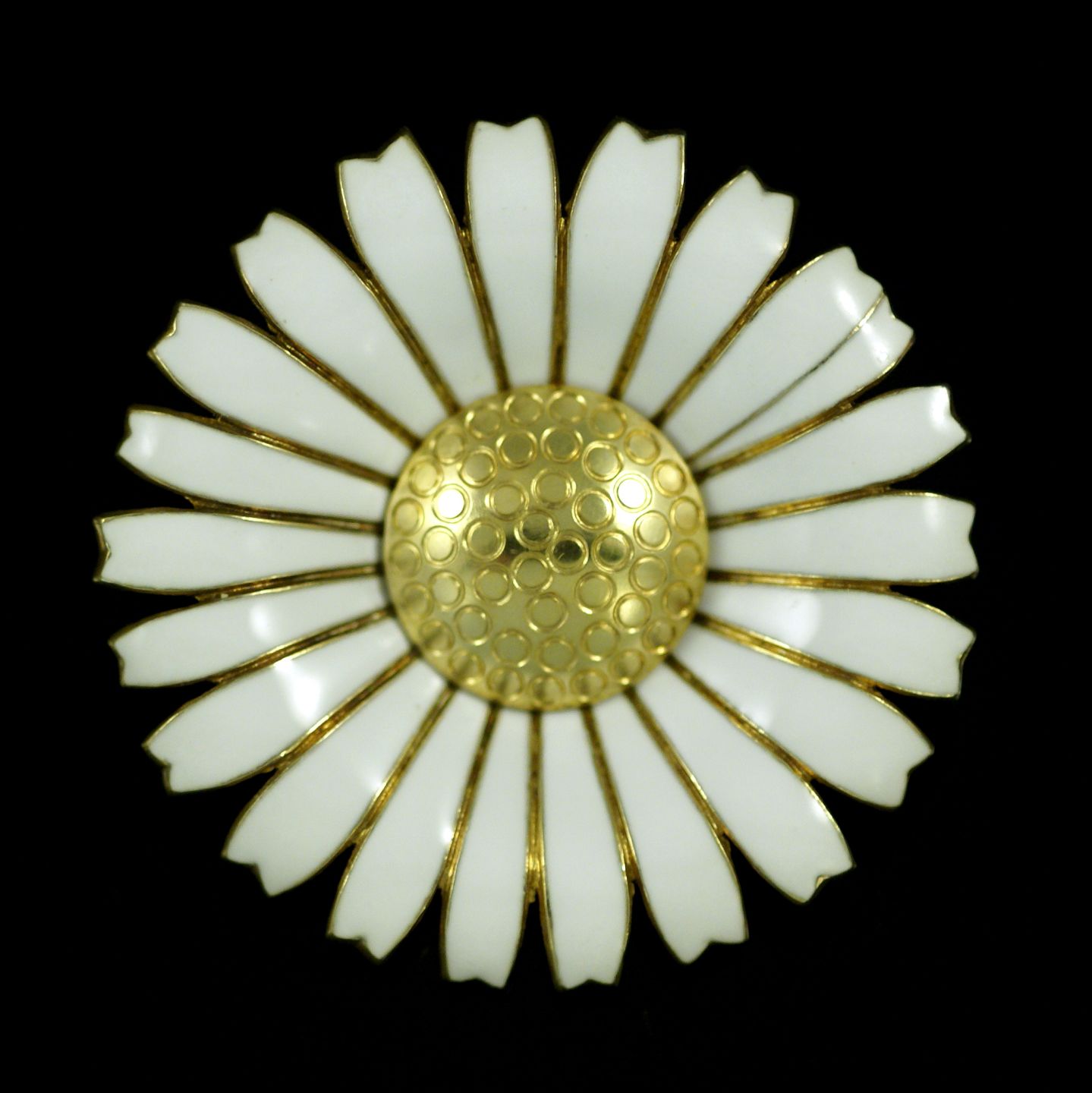 Georg Jensen Marguerit Broche/vedhæng i forgyldt sterling sølv med hvid emalje. 50mm