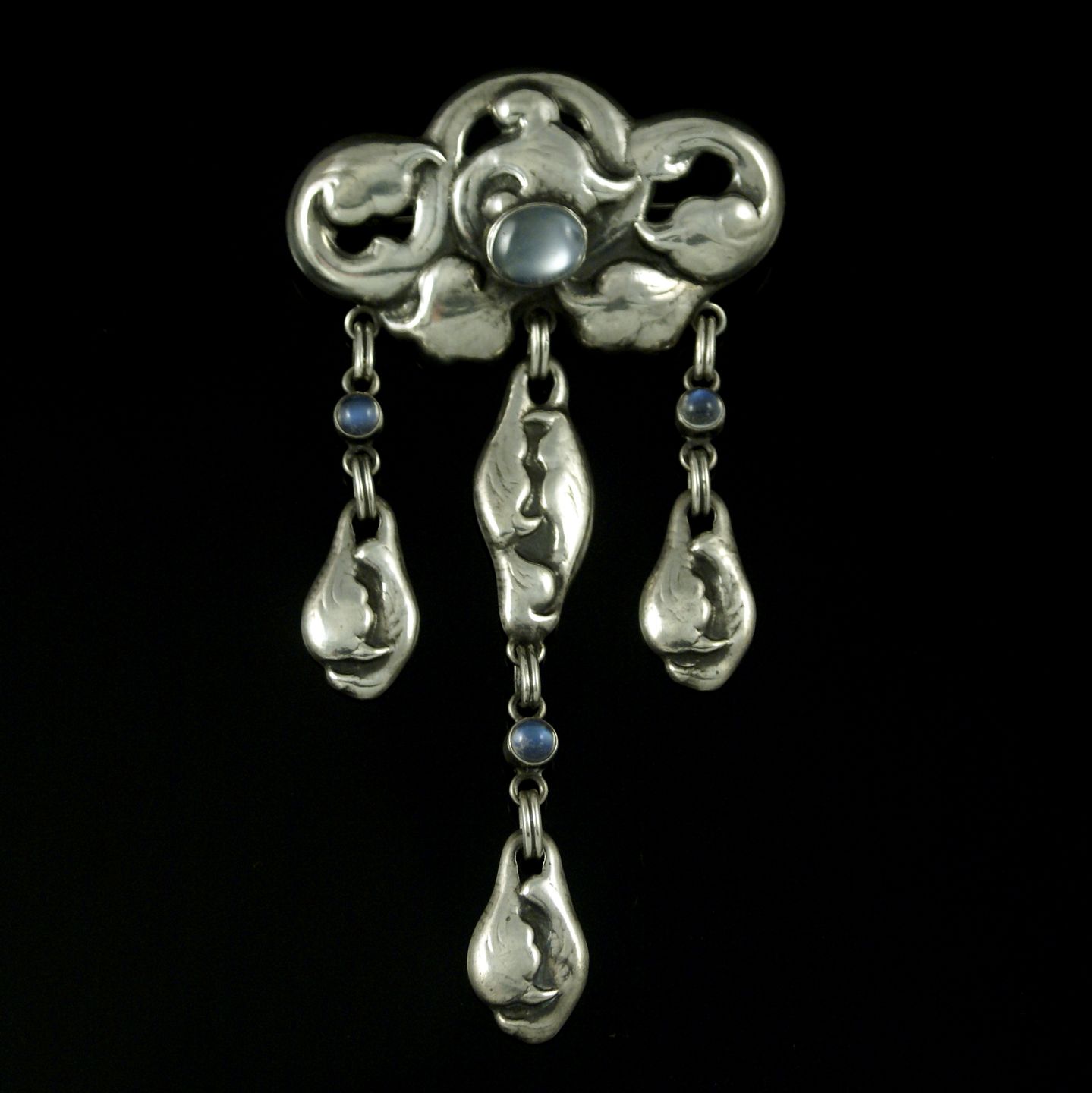 Bernhard Hertz. Art Nouveau Silver Brooch with Moonstones.