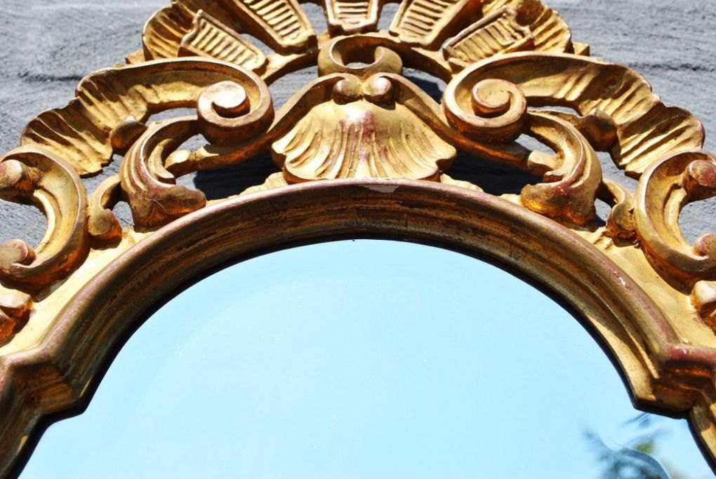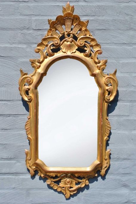 Italiensk udskåret forgyldt rococo stils spejl, 20. årh