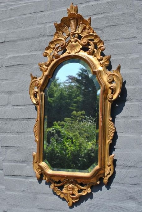 Italiensk udskåret forgyldt rococo stils spejl, 20. årh. 91 x 45 cm.