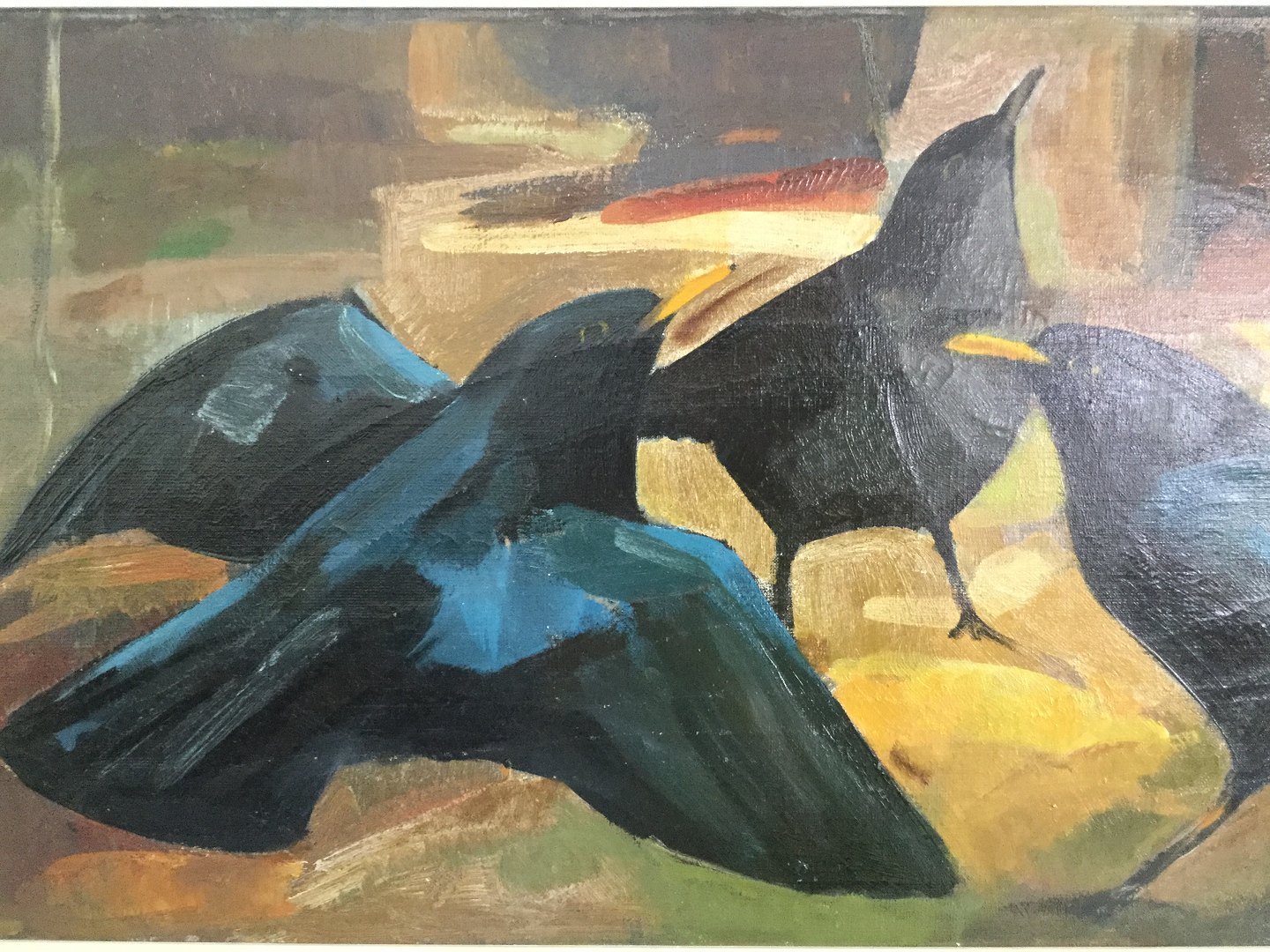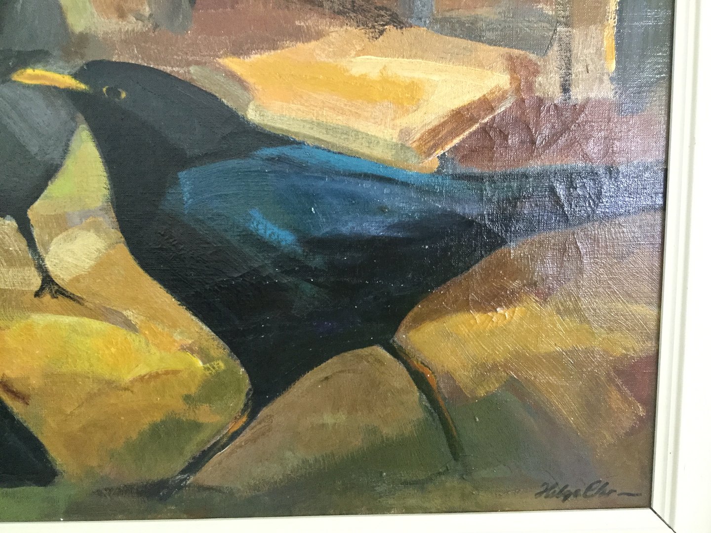 Maleri af Helge Christensen - Solsorte i landskab.