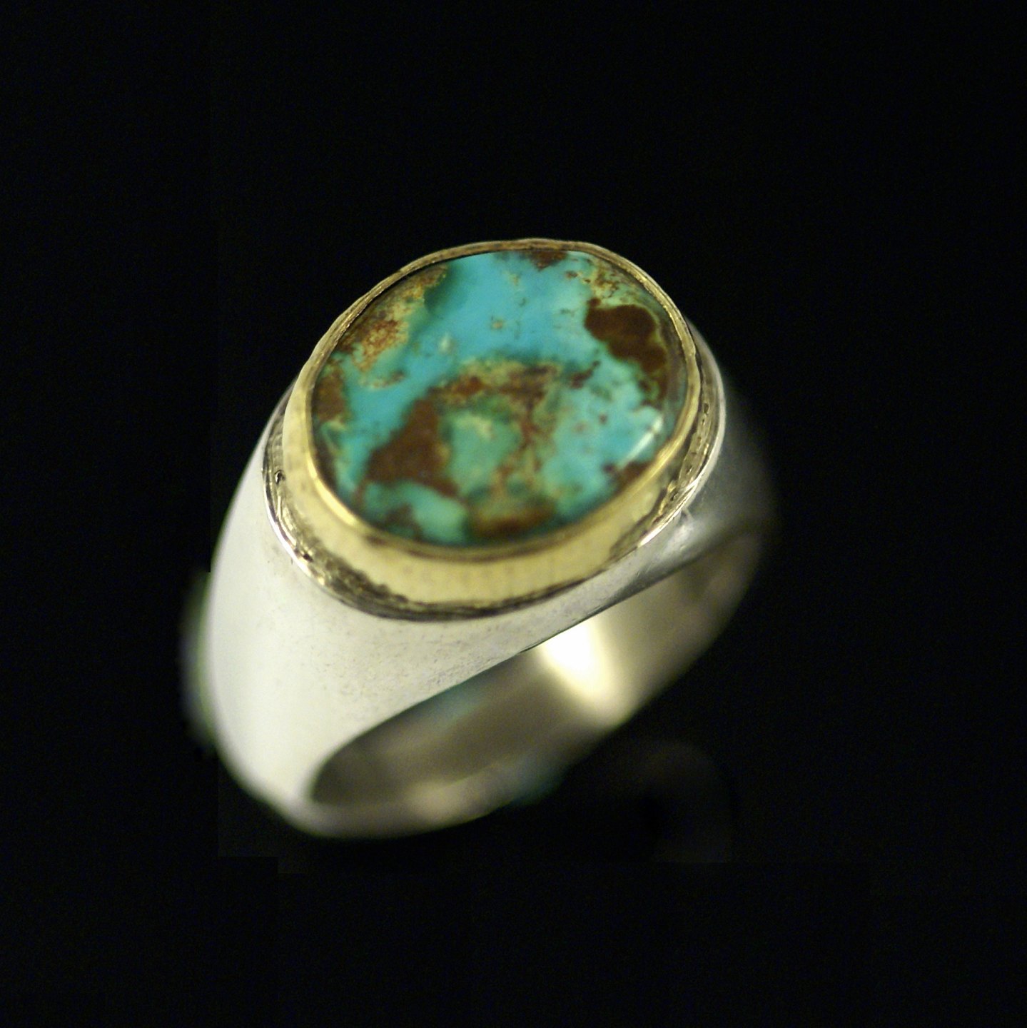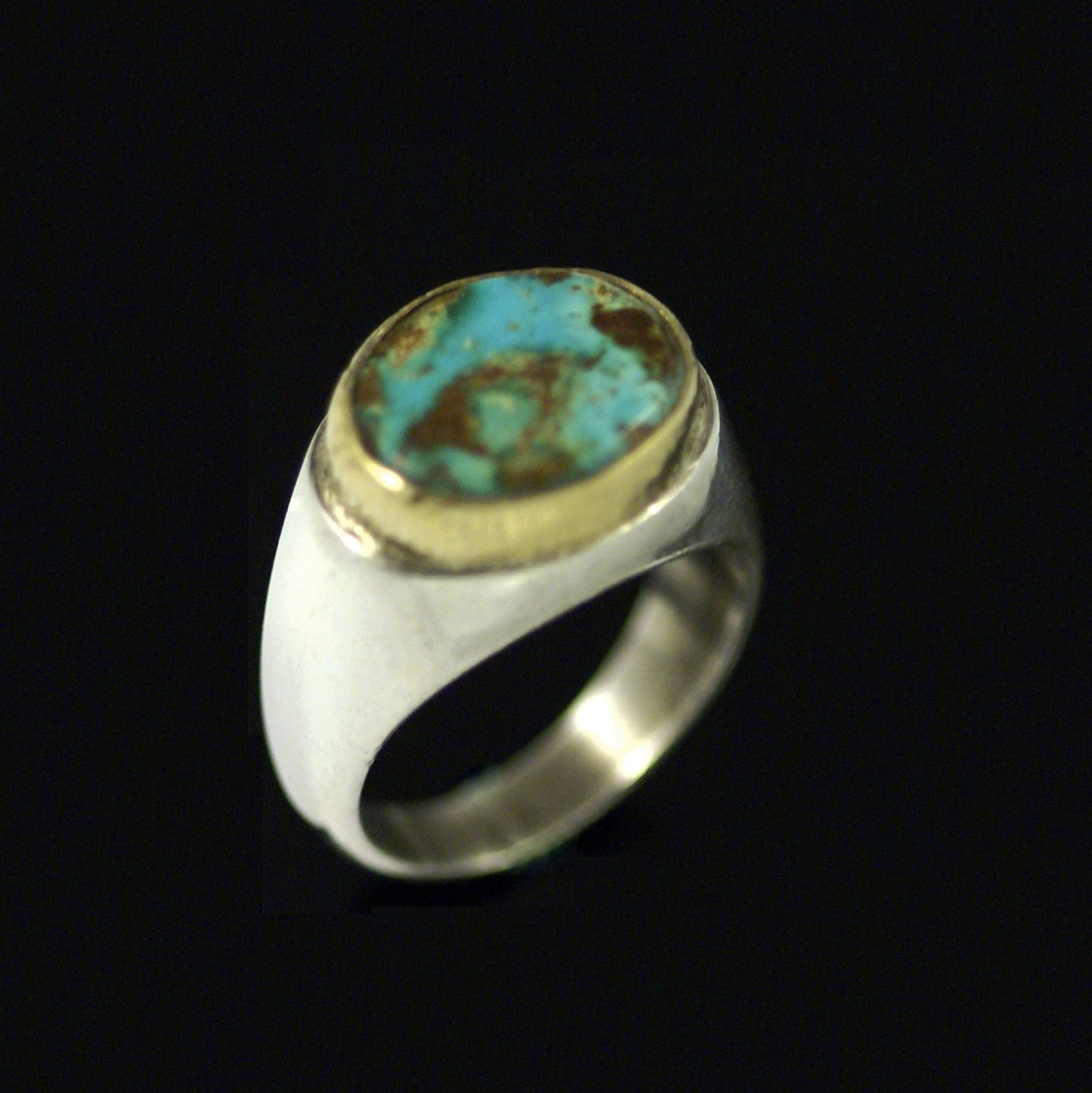 Ole Waldemar Jacobsen. Ring i Sterling sølv med guld og turkis.