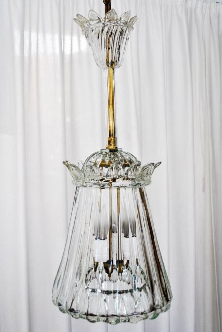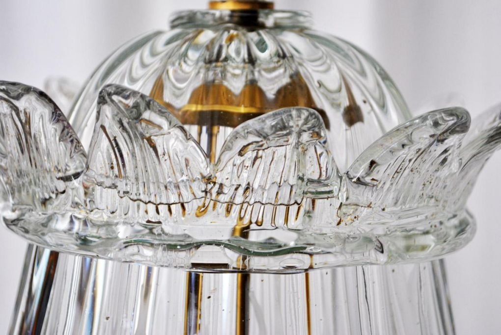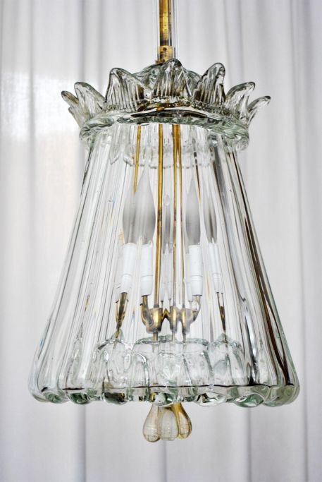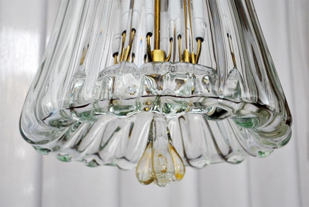 Venetian ceiling lamp in clear glass with gold, 1960s, Italy. 68 x 28 cm.