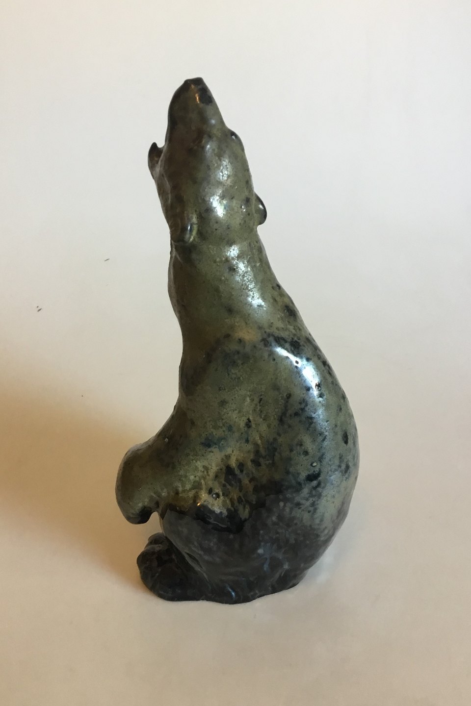 Royal Copenhagen Unique Figurine of Roaring Polar Bear with crystalline glaze No 502. Measures 32 cm / 12 19/32 in. x ca. 15 cm / 5 29/32 in. x ca. 15 cm / 5 29/32 in. Designet and signed by af C.F. Liisberg. Signed by Valdemar Engelhardt. The Date mark on the figurine is November 1899.