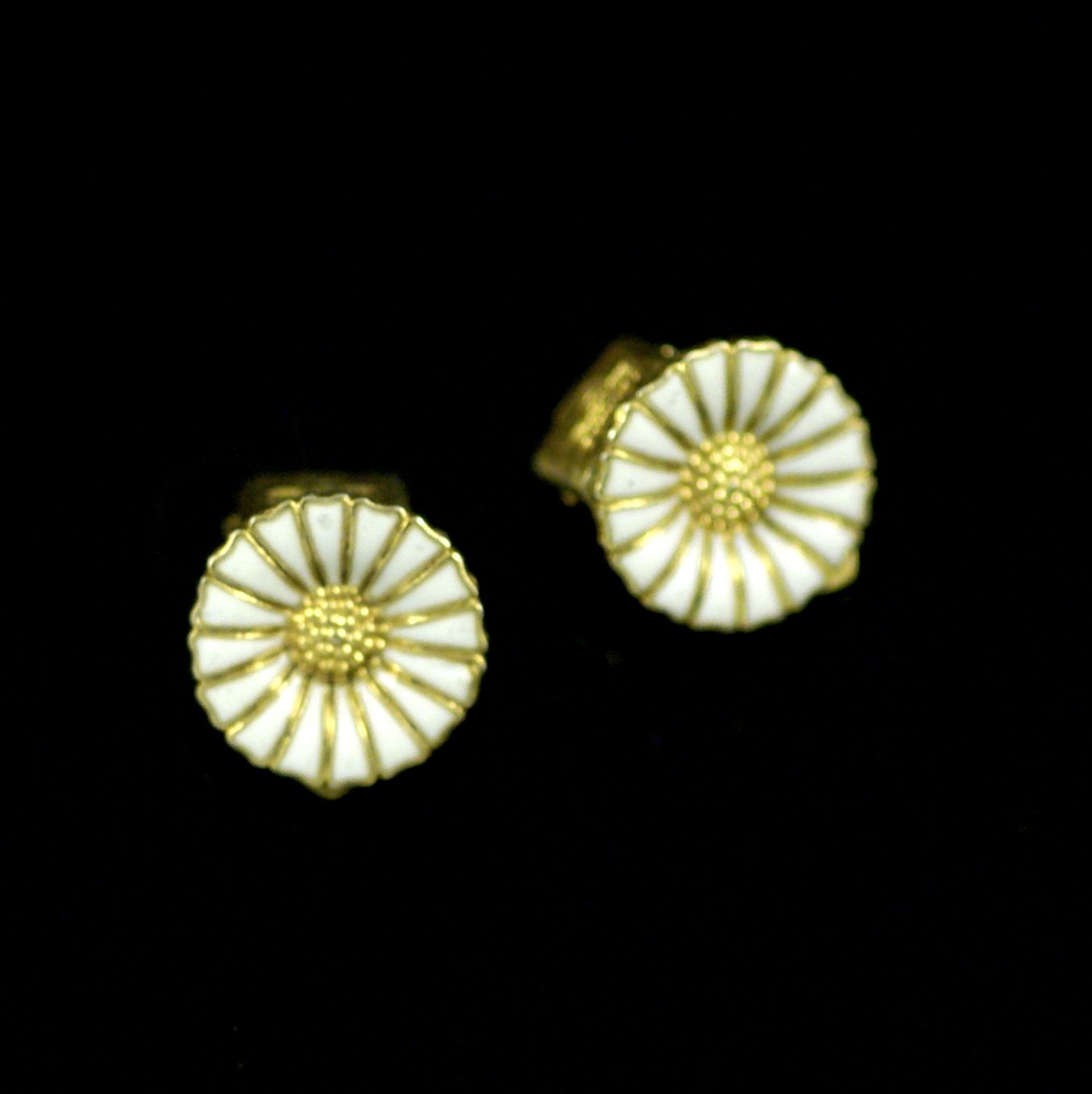 A. Michelsen Marguerit / Daisy øreklips i forgyldt sterlingsølv med hvid emalje - 11mm