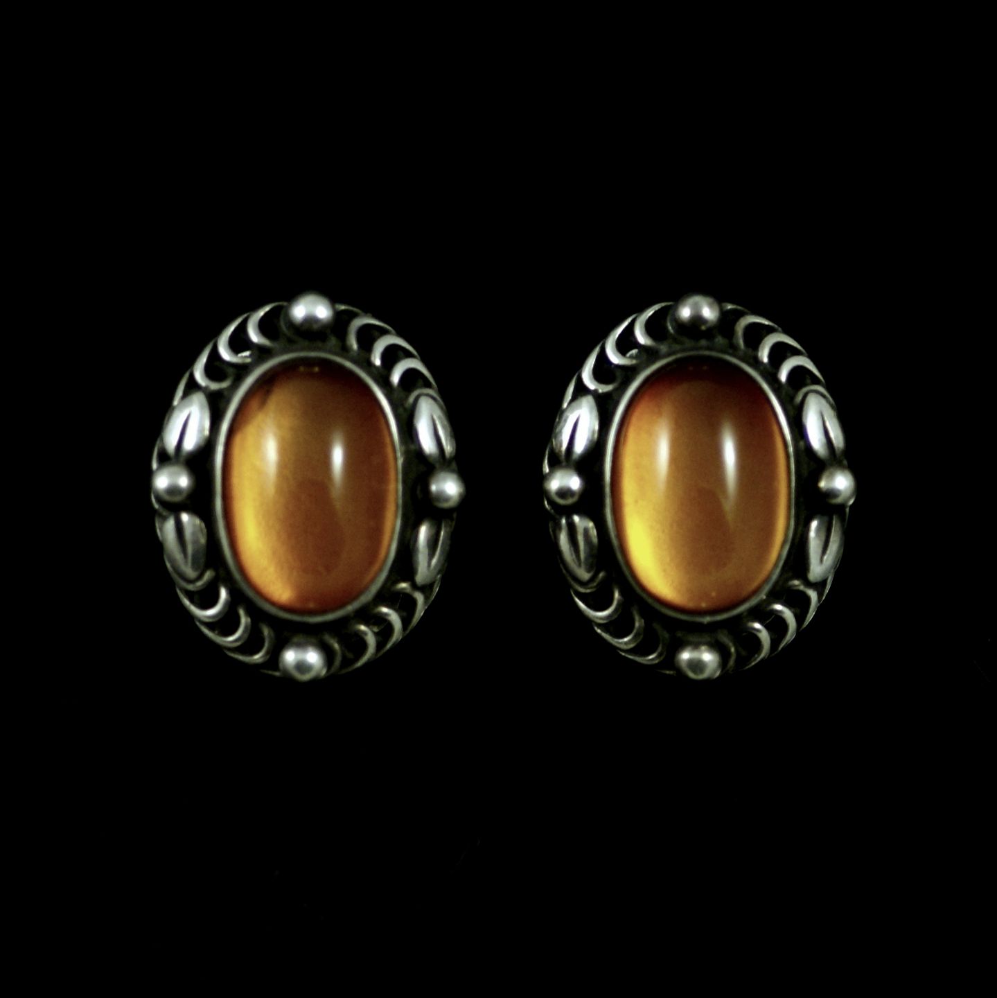 Georg Jensen. Øreclips i sterling sølv med rav - Heritage 1995
